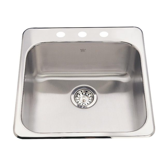KINDRED QSL2020-8-3N Steel Queen 20-in LR x 20.5-in FB x 8-in DP Drop In Single Bowl 3-Hole Stainless Steel Kitchen Sink In Satin Finished Bowl with Mirror Finished Rim