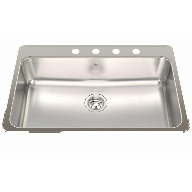 KINDRED QSLA2031-8-4N Steel Queen 31.25-in LR x 20.5-in FB x 8-in DP Drop In Single Bowl 4-Hole Stainless Steel Kitchen Sink In Satin Finished Bowl with Mirror Finished Rim