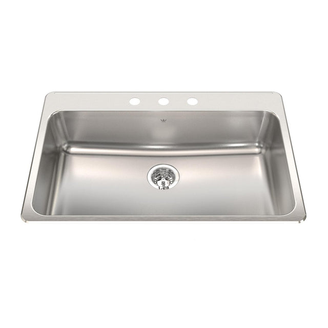 KINDRED QSLA2233-8-3N Steel Queen 33.38-in LR x 22-in FB x 8-in DP Drop In Single Bowl 3-Hole Stainless Steel Kitchen Sink In Satin Finished Bowl with Mirror Finished Rim