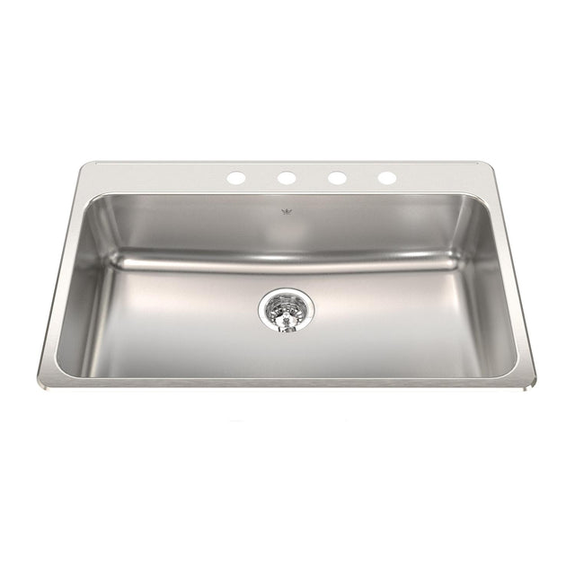 KINDRED QSLA2233-8-4N Steel Queen 33.38-in LR x 22-in FB x 8-in DP Drop In Single Bowl 4-Hole Stainless Steel Kitchen Sink In Satin Finished Bowl with Mirror Finished Rim