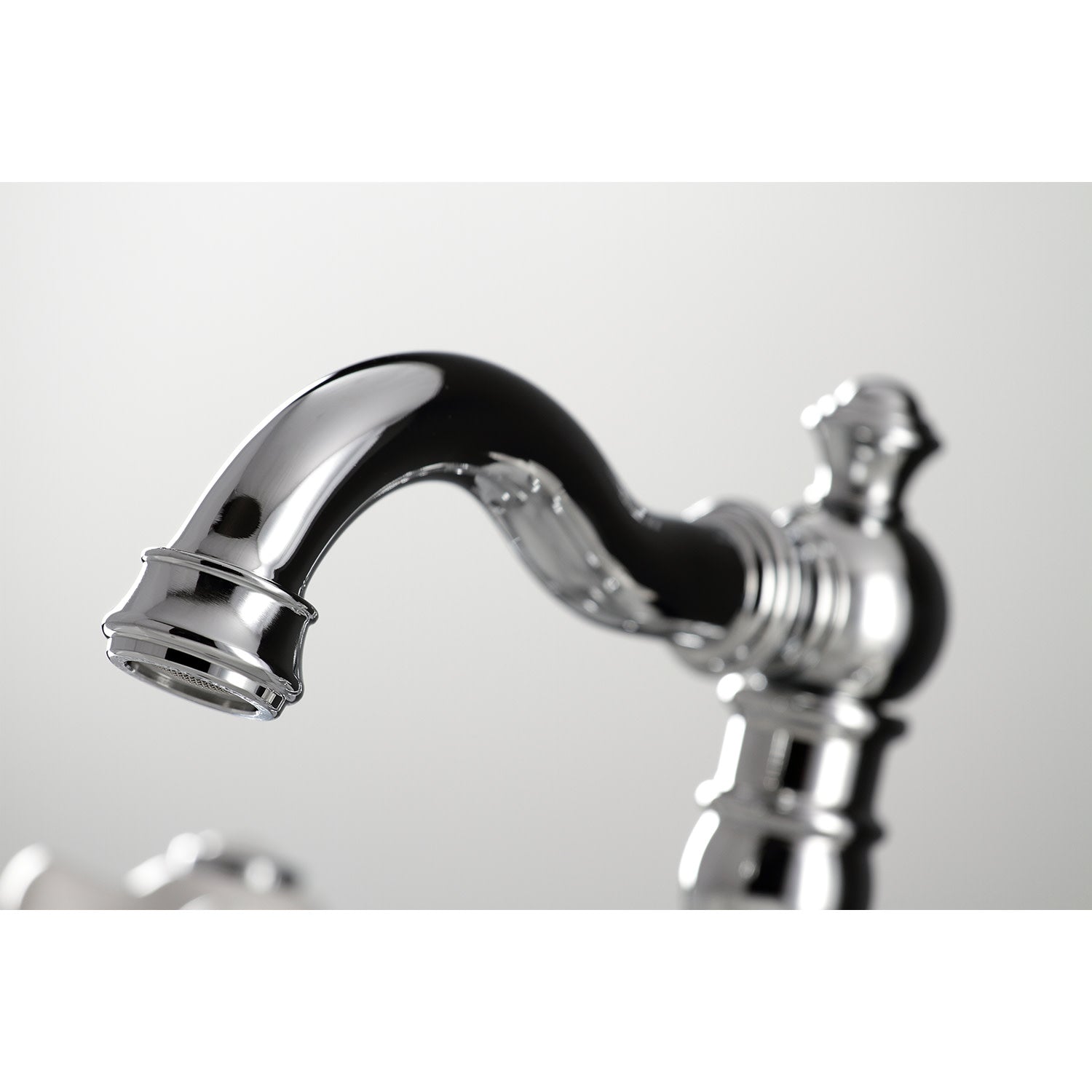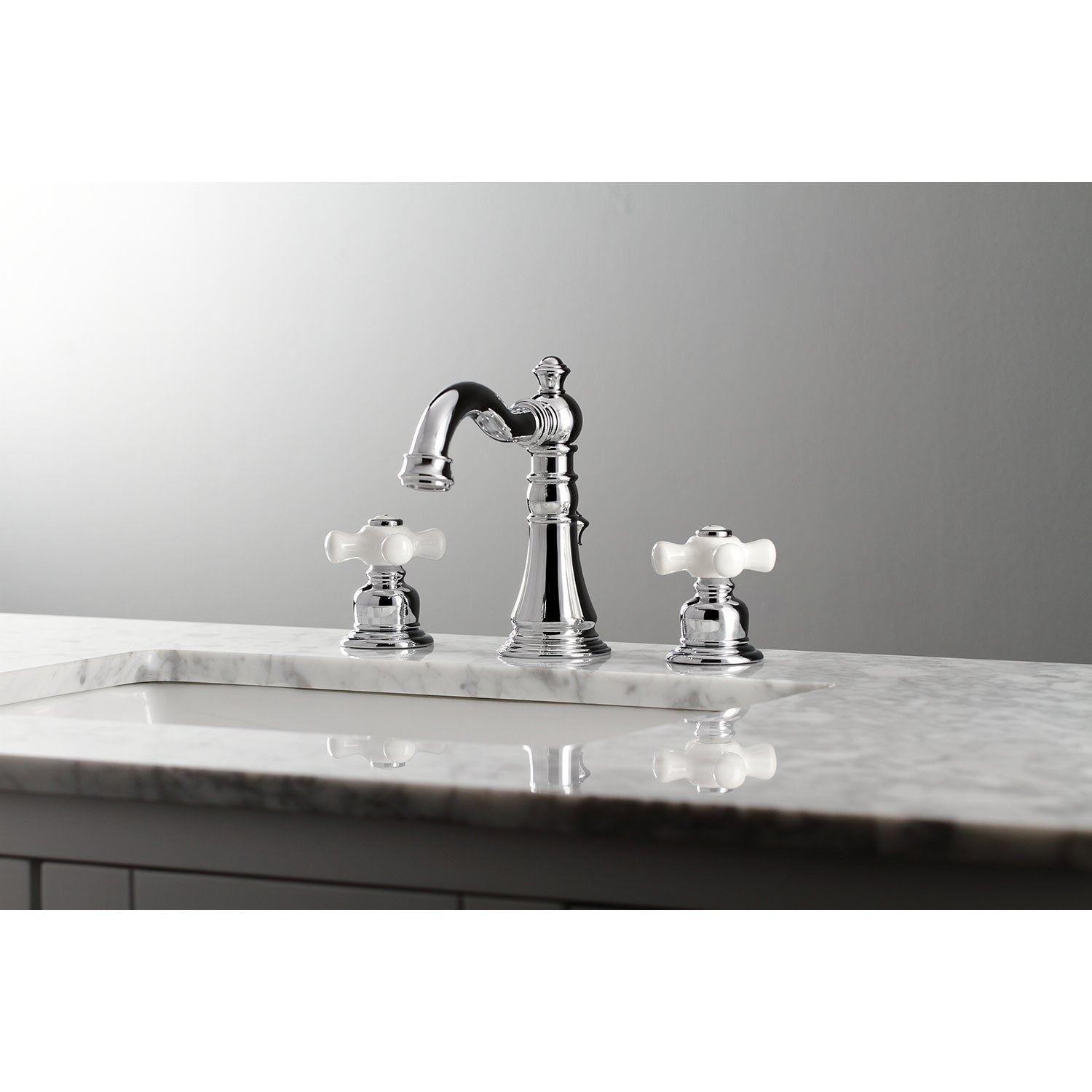 This faucet is perfect for those seeking inspiration from the exquisite artistry and architecture of the traditional Victorian era. Ideal for more spacious bathrooms, widespread faucets are more spread apart and feature a 3-hole installation. The American Classic widespread bathroom faucet and its featured sturdy brass construction and premium polished chrome finish are guaranteed to glamorize your home's traditional ensemble for years to come. This faucet will surely personify any homeowner's refined tastes with its regal qualities. A matching finish drain is also included.