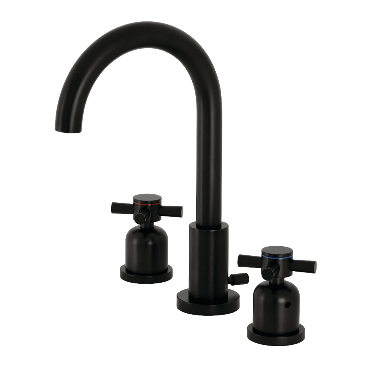 This faucet boasts bold, sleek design with its cylindrical styling. Ideal for more spacious bathrooms, widespread faucets are more spread apart and feature a 3-hole installation. The Concord 8 in. widespread bathroom faucet with brass pop-up and its featured sturdy brass construction and premium matte black finish are guaranteed to glamorize your home's modern ensemble for years to come. Flash the radical brilliance of contemporary trends with this statement piece. A matching finish drain is also included.