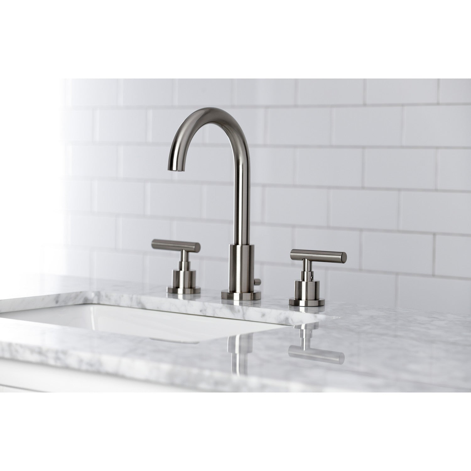 Kingston Brass FSC8928CML Manhattan Widespread Bathroom Faucet with Brass Pop-Up, Brushed Nickel