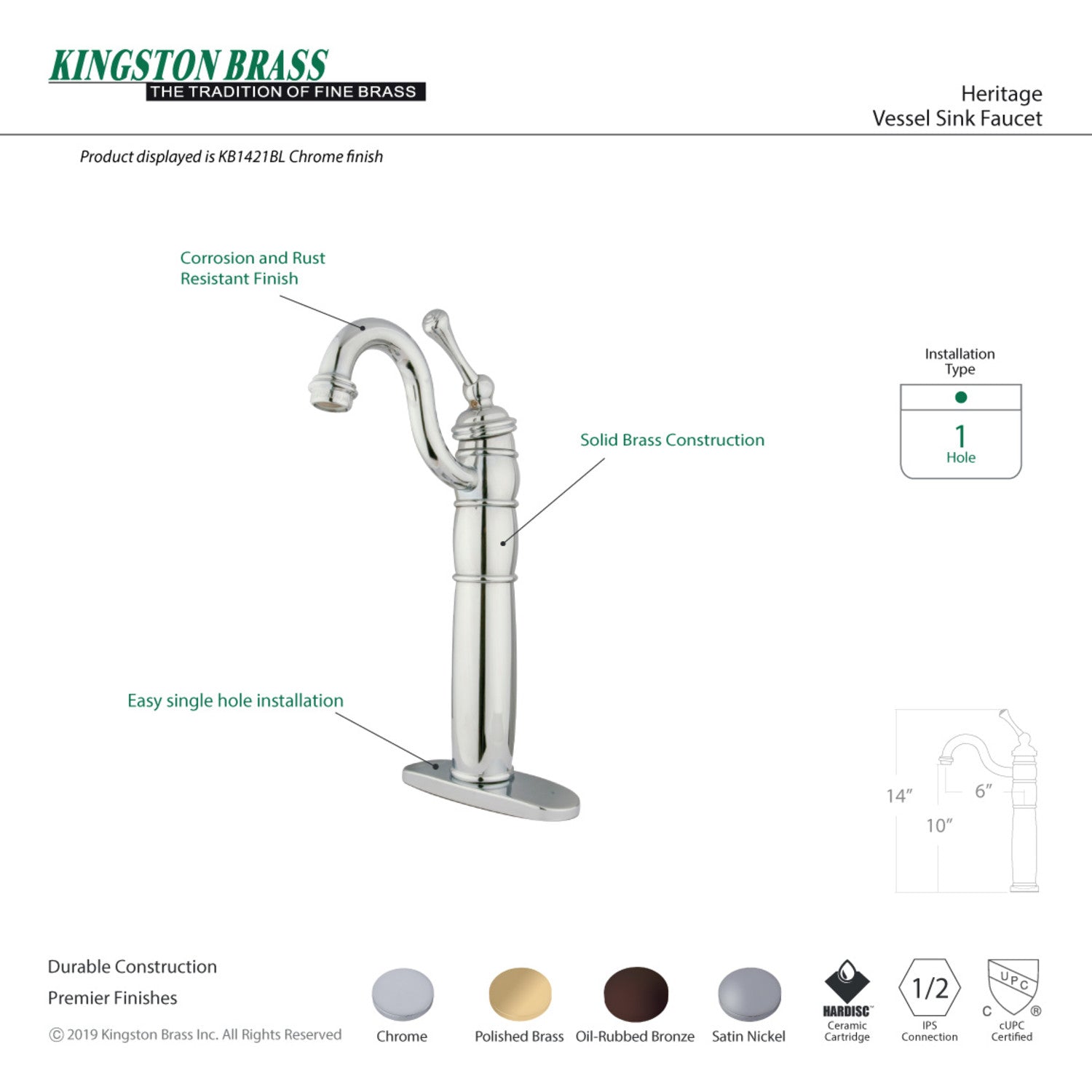 Kingston Brass KB1422BL Vessel Sink Faucet, Polished Brass