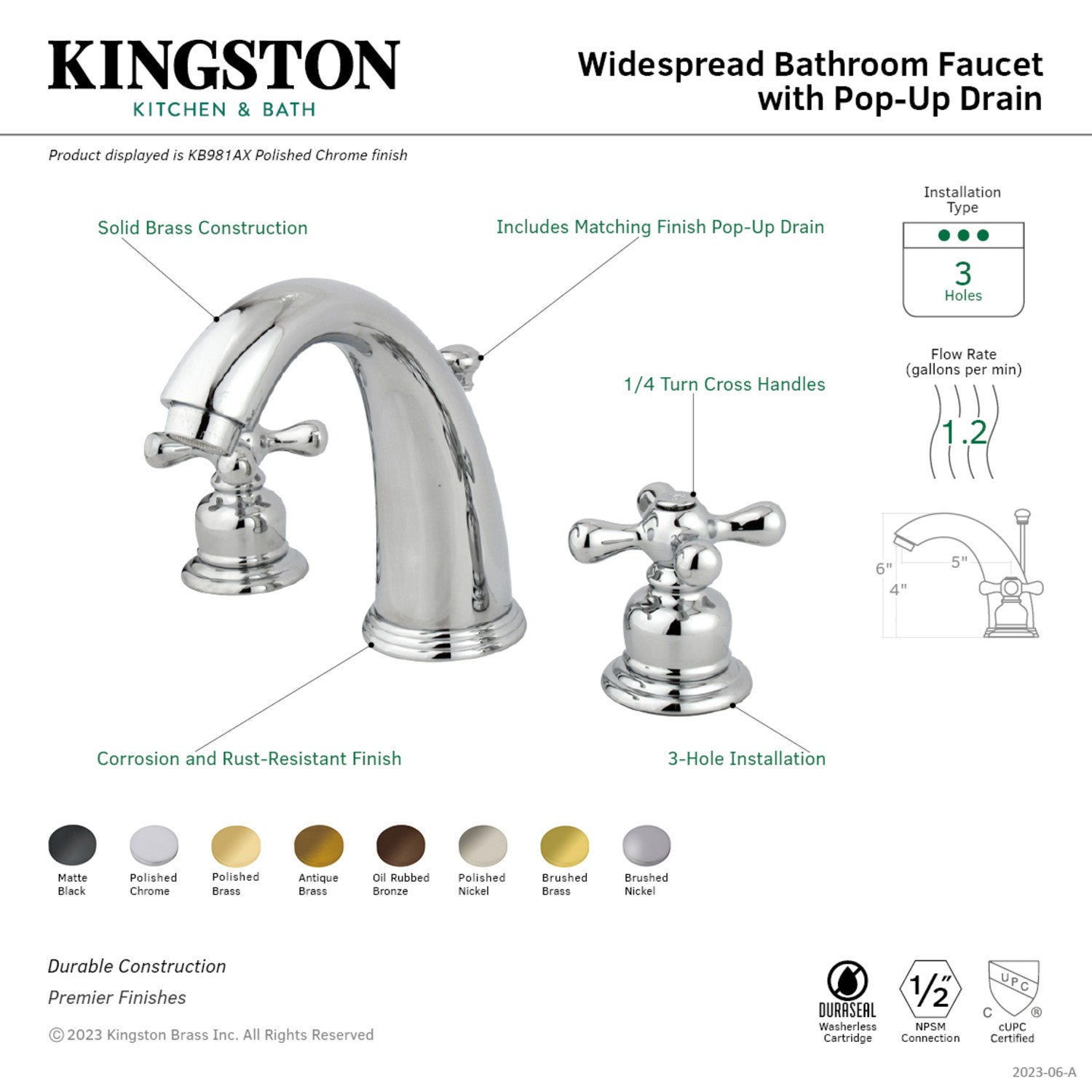 Kingston Brass KB980AX Victorian 2-Handle 8 in. Widespread Bathroom Faucet, Matte Black