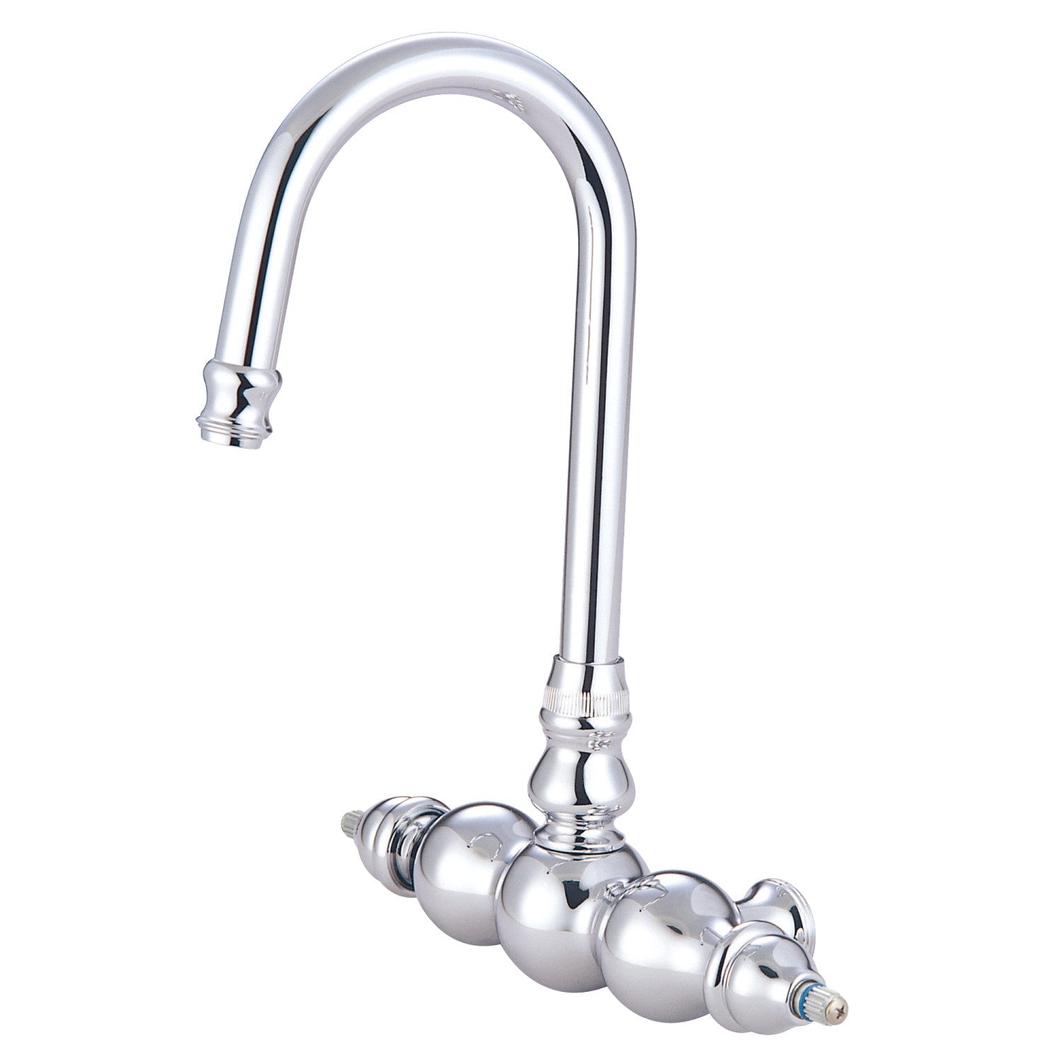 This gooseneck faucet body is designed for clawfoot tubs can be used wall mounted or deck mounted with the addition of the appropriate elbows and fittings, includes integral diverter and outlet for shower riser, manufactured out of solid brass and equipped with a ceramic cartridge this faucet will give you many years of trouble-free performance.