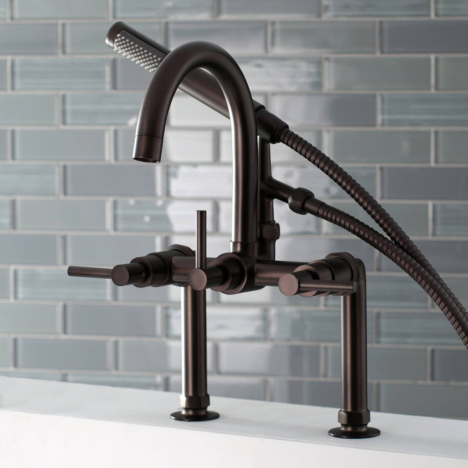 Concord AE8105DL Three-Handle 2-Hole Deck Mount Clawfoot Tub Faucet with Hand Shower, Oil Rubbed Bronze