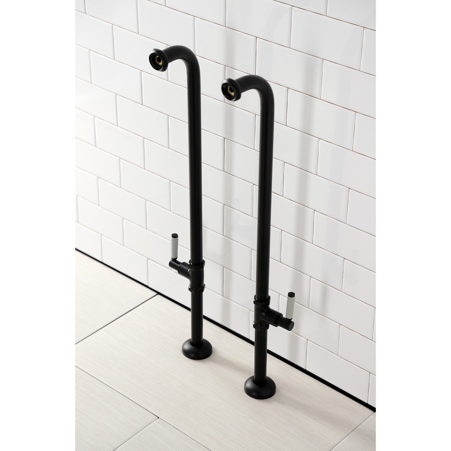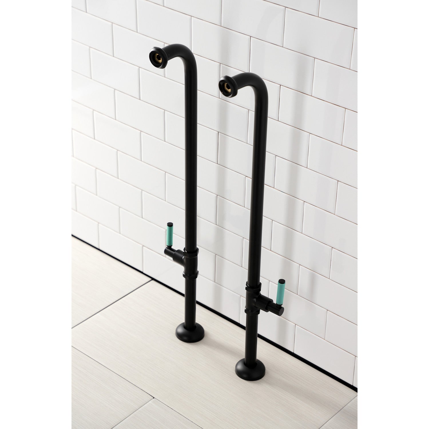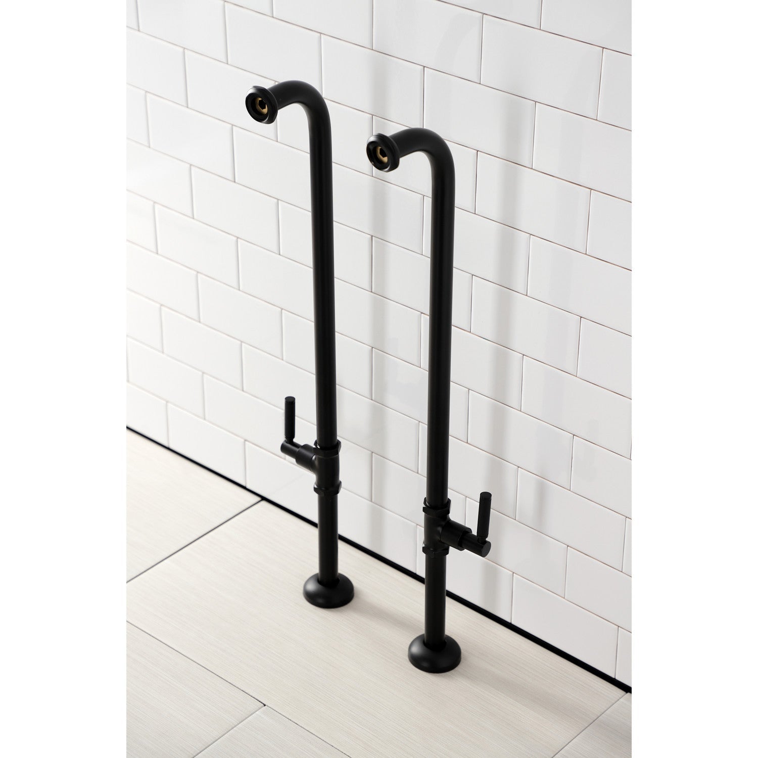 Dive into modern design with the sleek and cylindrical styling of this freestanding supplies from the Concord Collection. This freestanding tub supply line set features a floor-mount installation and 27-3/4 inch height. Constructed of solid brass material. Excellence of endurance and reliability is emboldened by a Corrosion-resistant finish, embellish your home ensemble with this freestanding water supplies. The water supplies comes in pairs and includes valve stops with lever handles. Available in a variety of finishes.