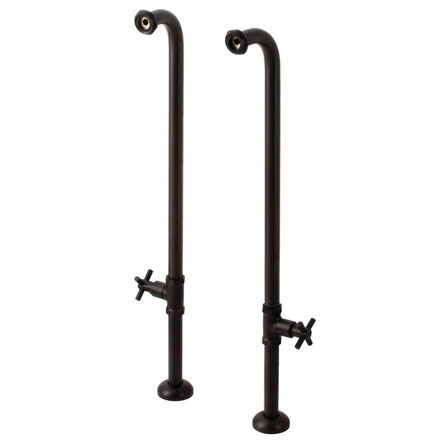 Dive into modern design with the sleek and cylindrical styling of this freestanding supplies from the Concord Collection. This freestanding tub supply line set features a floor-mount installation and 27-3/4 inch height. Constructed of solid brass material. Excellence of endurance and reliability is emboldened by a Corrosion-resistant finish, embellish your home ensemble with this freestanding water supplies. The water supplies comes in pairs and includes valve stops with cross handles. Available in a variety of finishes.