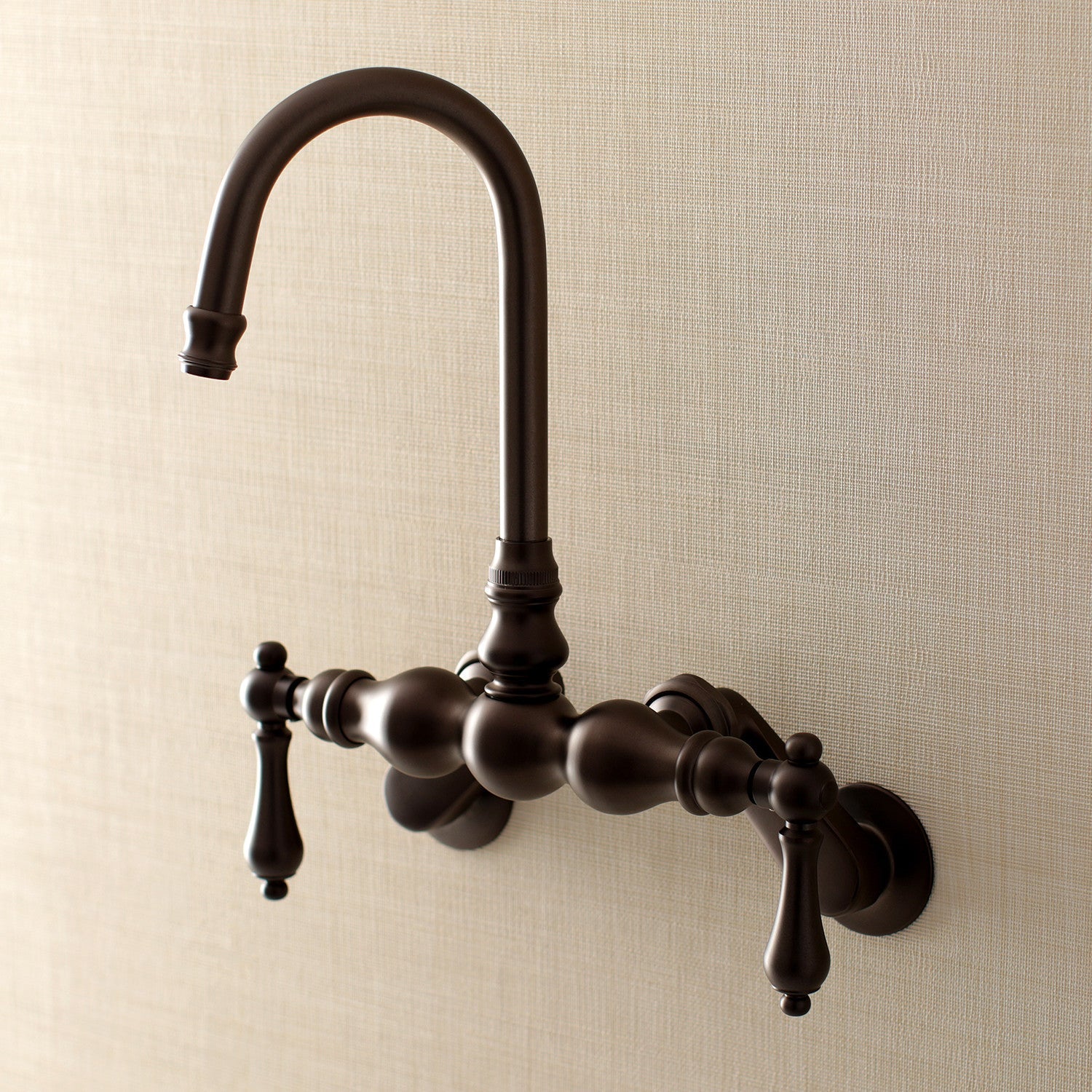 Wall mount clawfoot tub faucets are the perfect fixture to add decorative flair within your bathroom because of their unique architectural elements. With vintage opulence, this will complete your refined bathroom decorum with the help of its premium oil rubbed bronze finish. The solid brass construction also makes for a heavy, quality made product.