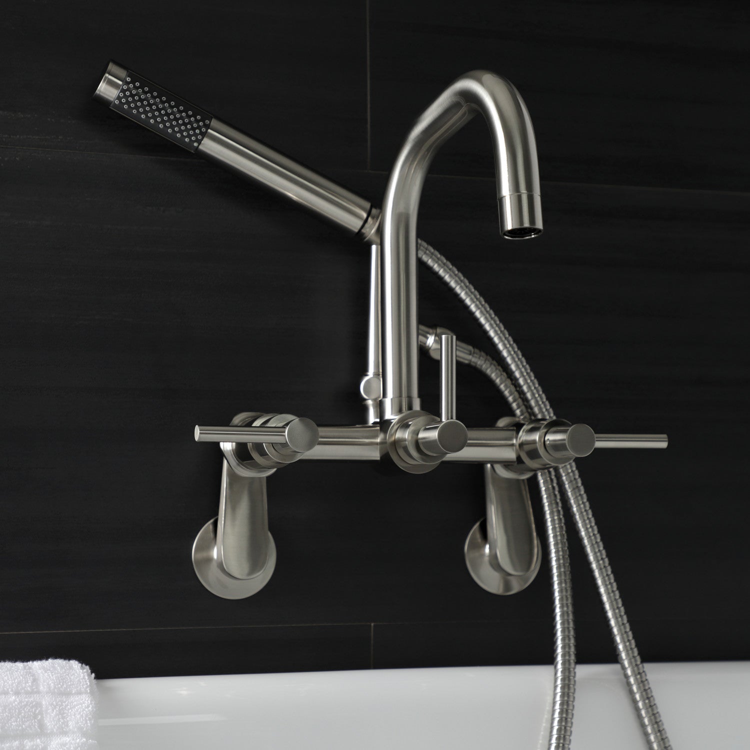 Wall mount clawfoot tub faucets are the perfect fixture to add decorative flair within your bathroom because of their unique architectural elements. With sleek design, this will complete your refined bathroom decorum with the help of its premium brushed nickel finish and contemporarily styled handheld shower. The solid brass construction also makes for a heavy, quality made product.