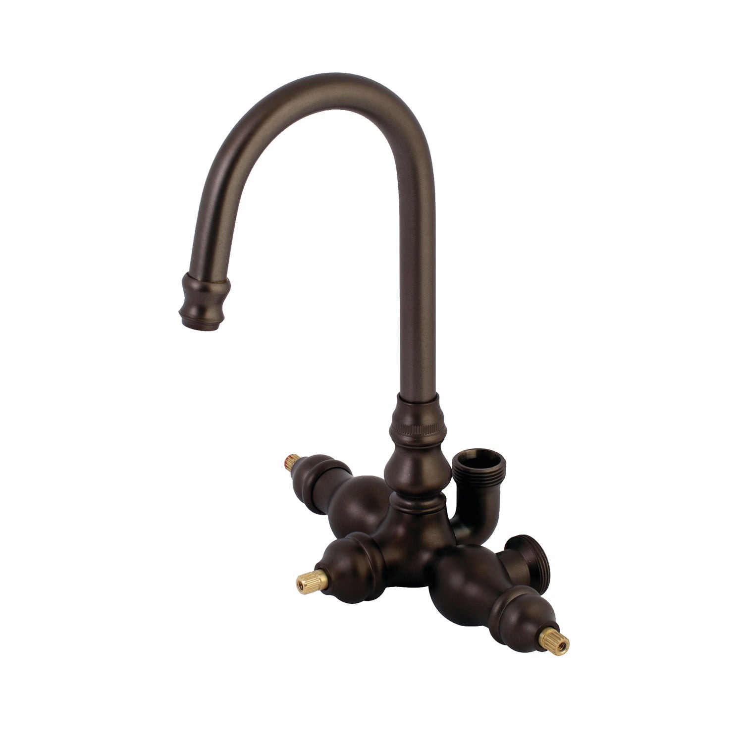 The Aqua Vintage clawfoot tub faucet features a high gooseneck spout. The gooseneck spout allows for plenty of space for water to flow with its 4-1/2" spout reach and 9-7/16" spout height. Made from solid brass this tub faucet is durable is exceptionally designed and makes any interior feel complete. The faucet is 3-3/8" wall mount installation and fits snuggly in almost all environments. Available in a variety of stunning finishes ready to match any home decor.