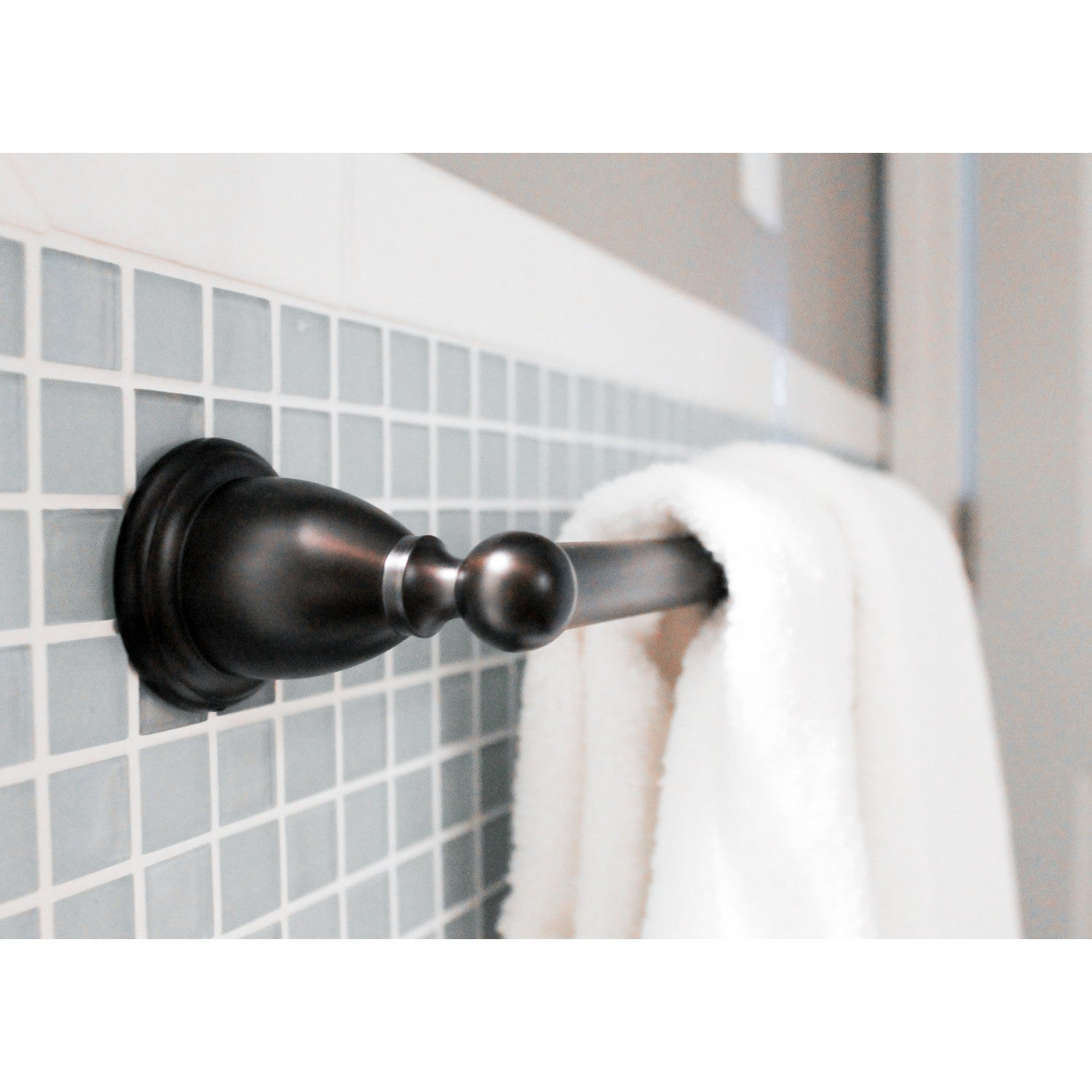 Hang your towels in style with the chic appeal of the Kingston Brass Heritage Towel Bar. Available in multiple finishes, this 24" bar can quickly become an essential piece of your bathroom design. Pair with other accessories from the Heritage Collection.