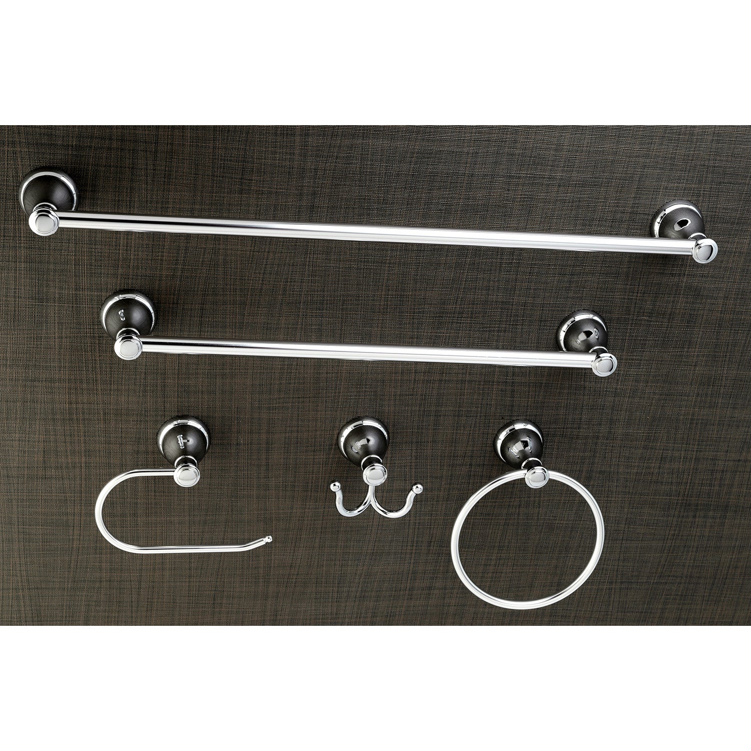 This all inclusive set of bathroom accessories features intricate detailing for a luxurious and astonishing style. Any bathroom will be given an added boost of opulence from these coordinated pieces. Two towel bars, towel ring, robe hook, and a toilet paper holder are included for all of your hanging storage needs. Available in multiple, durable finishes.