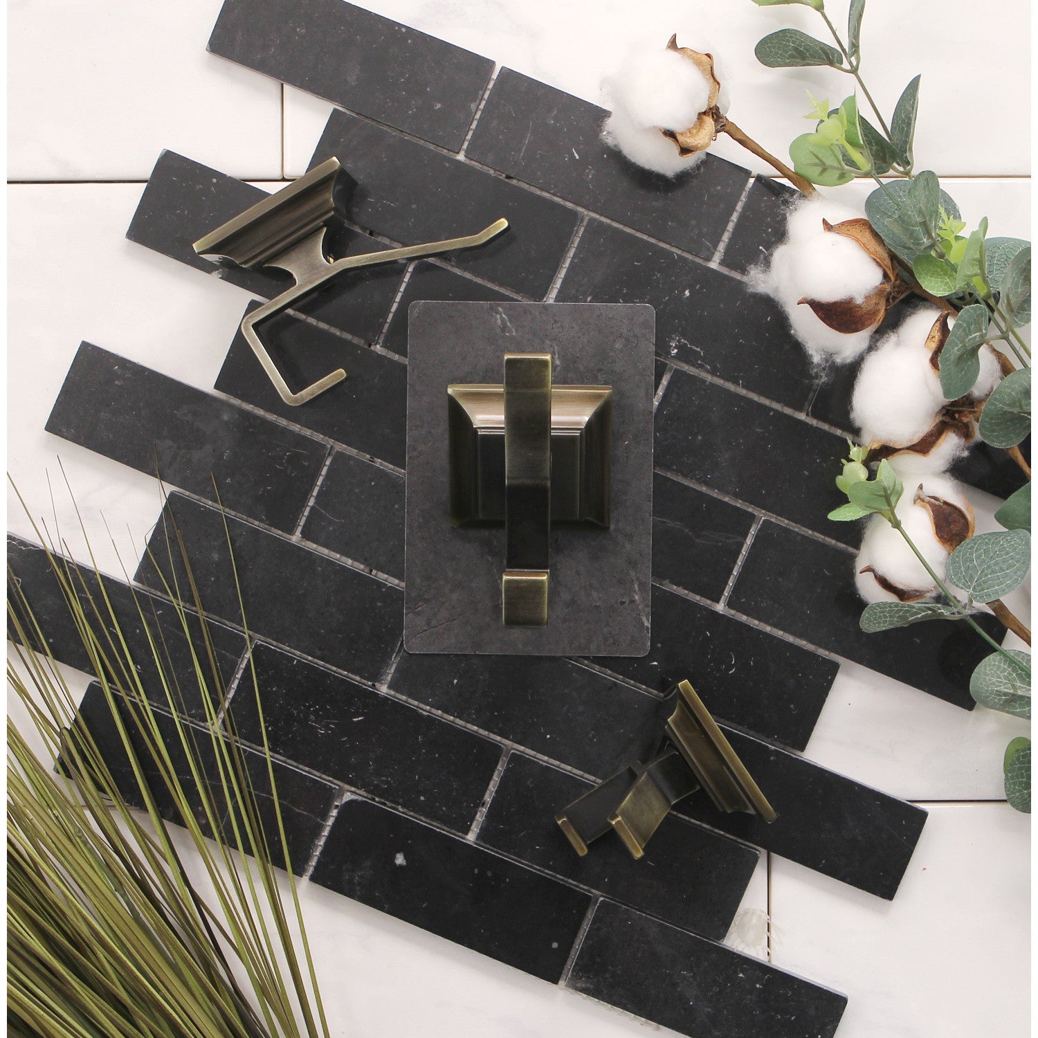 The Monarch bathroom robe hook helps to de-clutter your bathroom by providing additional storage space. Intended to add sophistication to your bathroom decor, the premium antique brass finish will last for years to come. The package comes with 3 pieces of the robe hook.