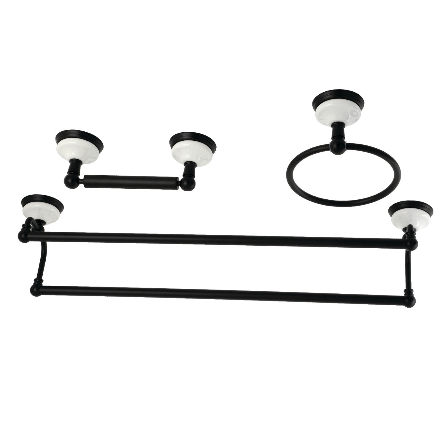 - 3 piece bathroom accessory kit includes: 24" dual towel bar, towel ring, and toilet paper holder
