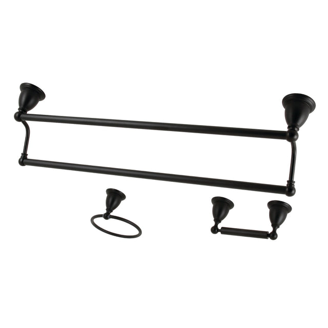 • 3 piece bathroom accessory kit includes: 24" towel bar, toilet paper holder, and towel ring