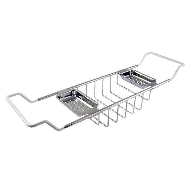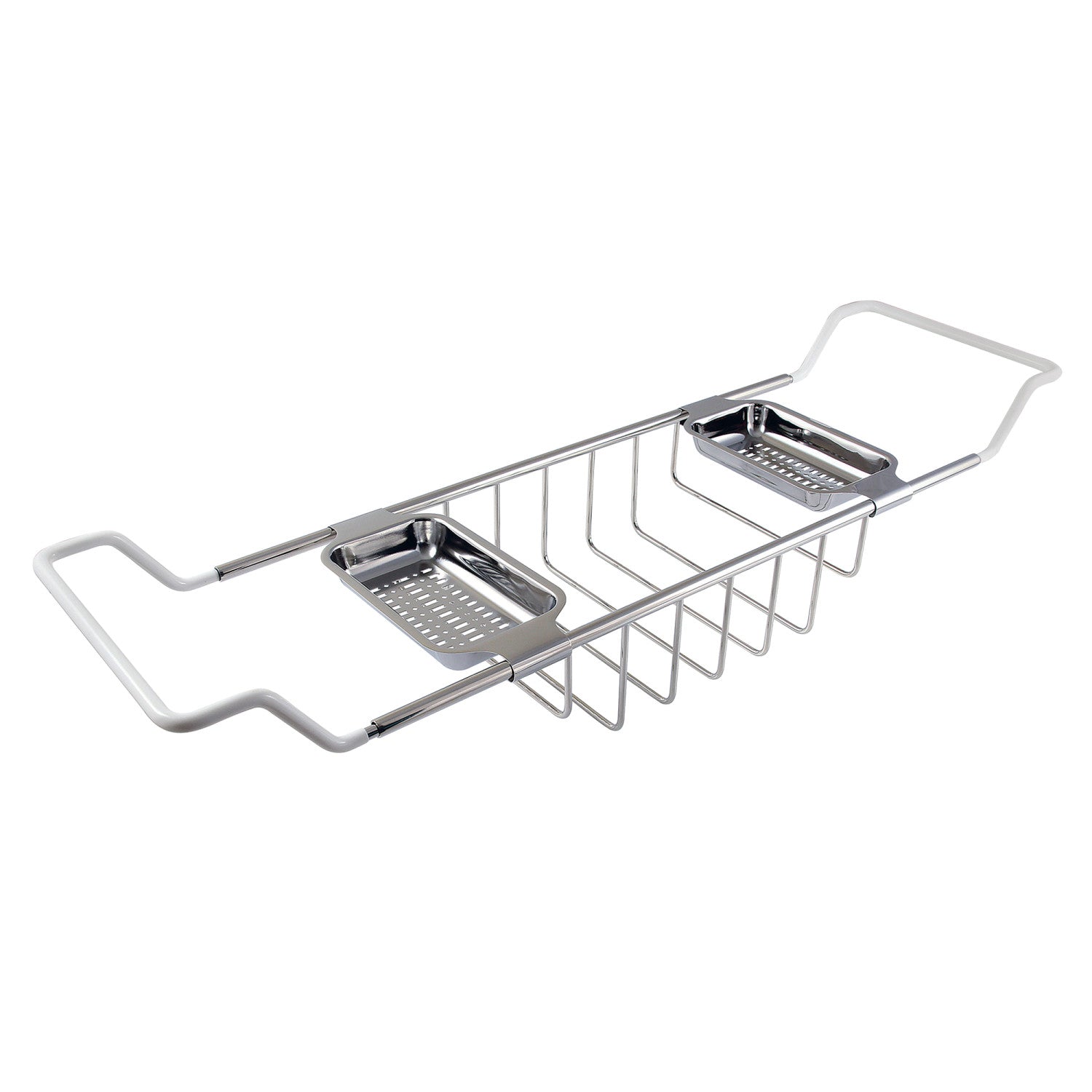 Add a touch of refined style from this tub shelf to pair with your elegant clawfoot tub. With an adjustable length from 26-33" for easy adaptaions, the caddy offers rubber grip ends for a solid anchor in one spot. Beautifully finalized with 2 side trays for soap, sponges, or other accessories, this bathtub shelf is finished with an opulent premium finish for an additional hint of gleaming luxury.