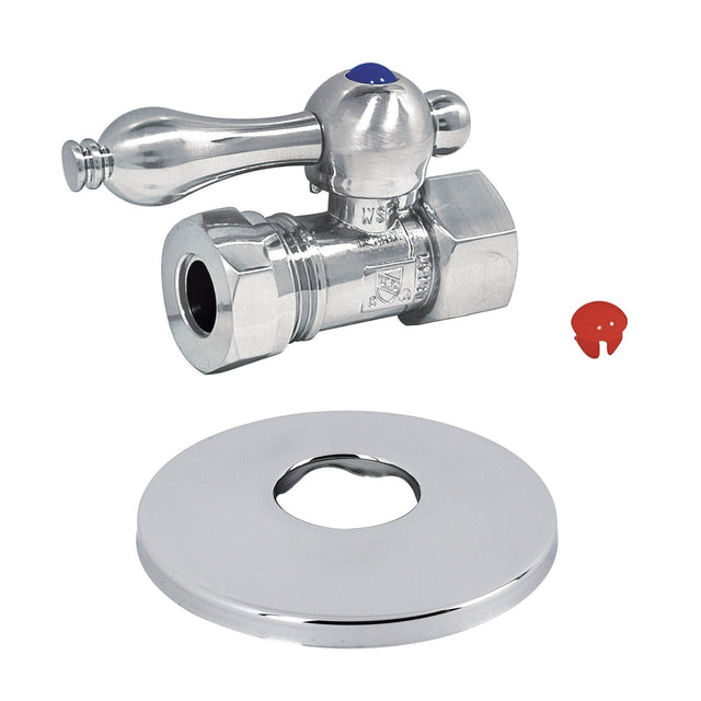 Vintage CC44151K 1/2-Inch FIP x 1/2 or 7/16-Inch Slip Joint Quarter-Turn Straight Stop Valve with Flange, Polished Chrome
