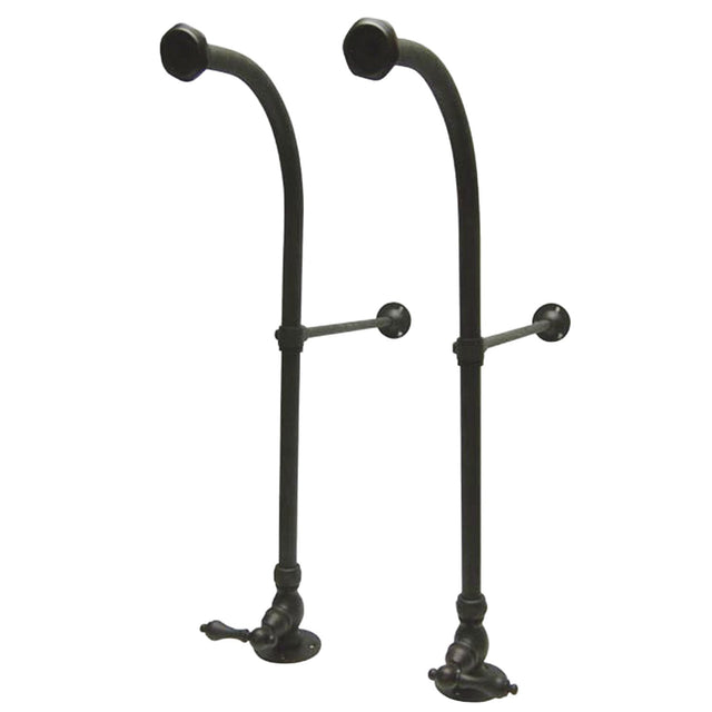This freestanding water supplies with stop comes in pairs and includes adjustable height wall braces. They are constructed of high quality brass to ensure reliability and durability. Its premier finish resists tarnishing and corrosion.