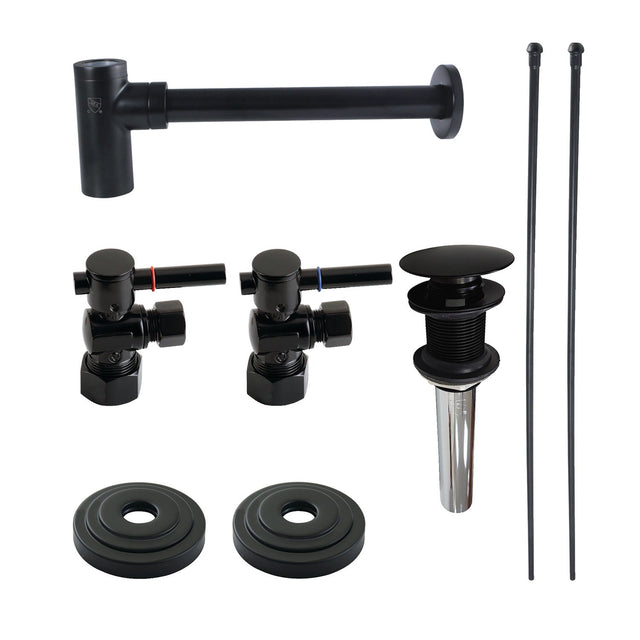 This 8-piece vessel sink plumbing supply kit from Kingston Brass provides all the necessary parts in the water flow process of your vessel sink. The set includes two 1/4 turn hardisc angle stops with lever handles, two 30" bullnose supply line, two contemporary decorative flanges, a contemporary 1-1/4" OD decorative bottle-trap and a 22 gauge 1-1/4" vessel sink drain without overflow. Constructed of high quality brass and a tarnish-resistant finish, designed for long-lasting performance. Available in a variety of stunning finishes ready to match any home decor.