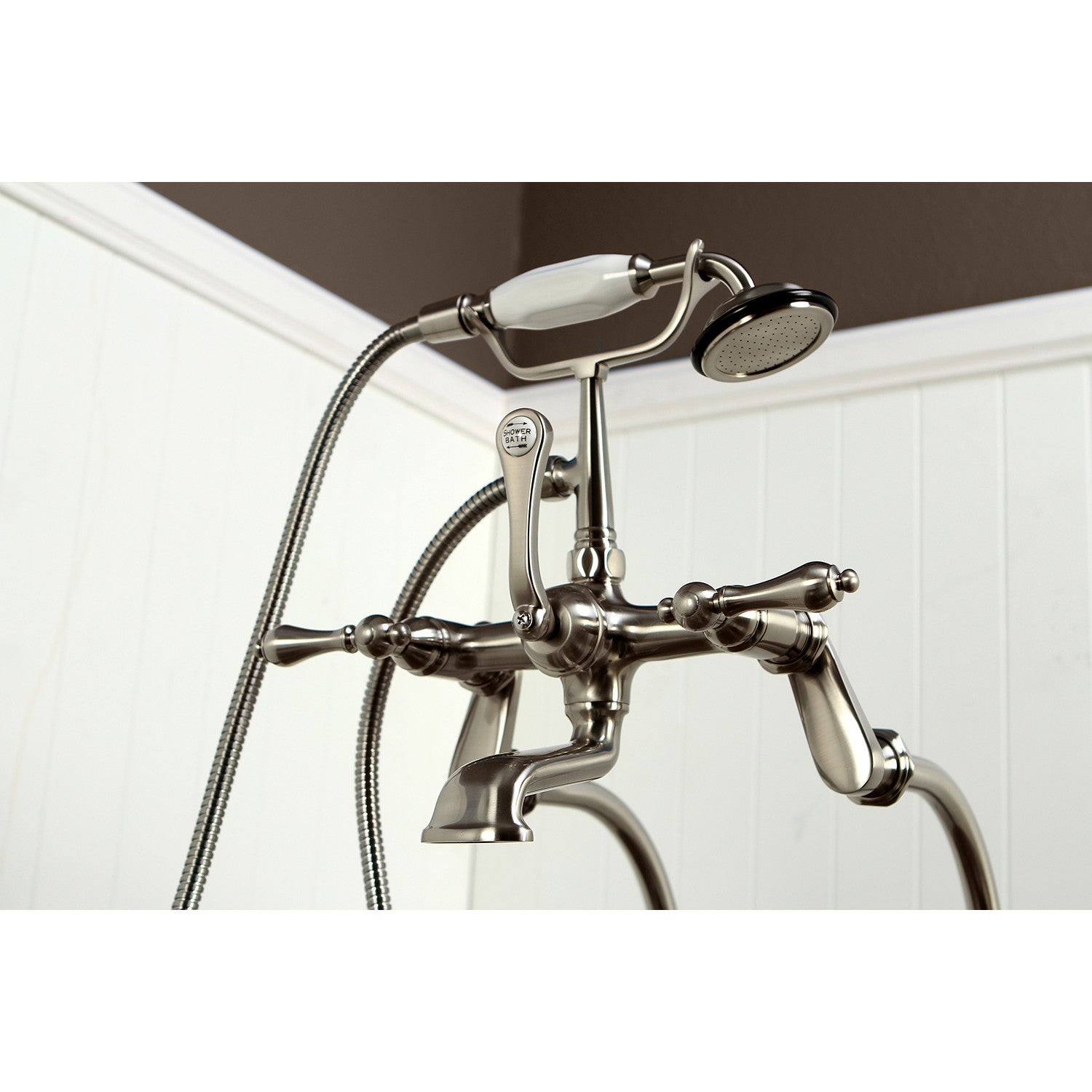 • Installs on tub wall with 7" centers