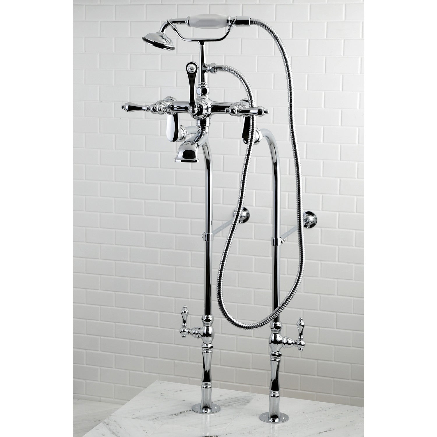 To wrap up your traditionally styled home decorum, incorporate the refinement of one of Kingston Brass' clawfoot tub faucet packages for an all-inclusive and reliable complement to your clawfoot tub. The beautiful vintage styling of this tub filler along with the telephone style handshower will lend to a Victorian style inspiration. All included products are made from sturdy materials and a premium finish for a reliable and long lasting set to last for years to come. Includes faucet and water supply lines.