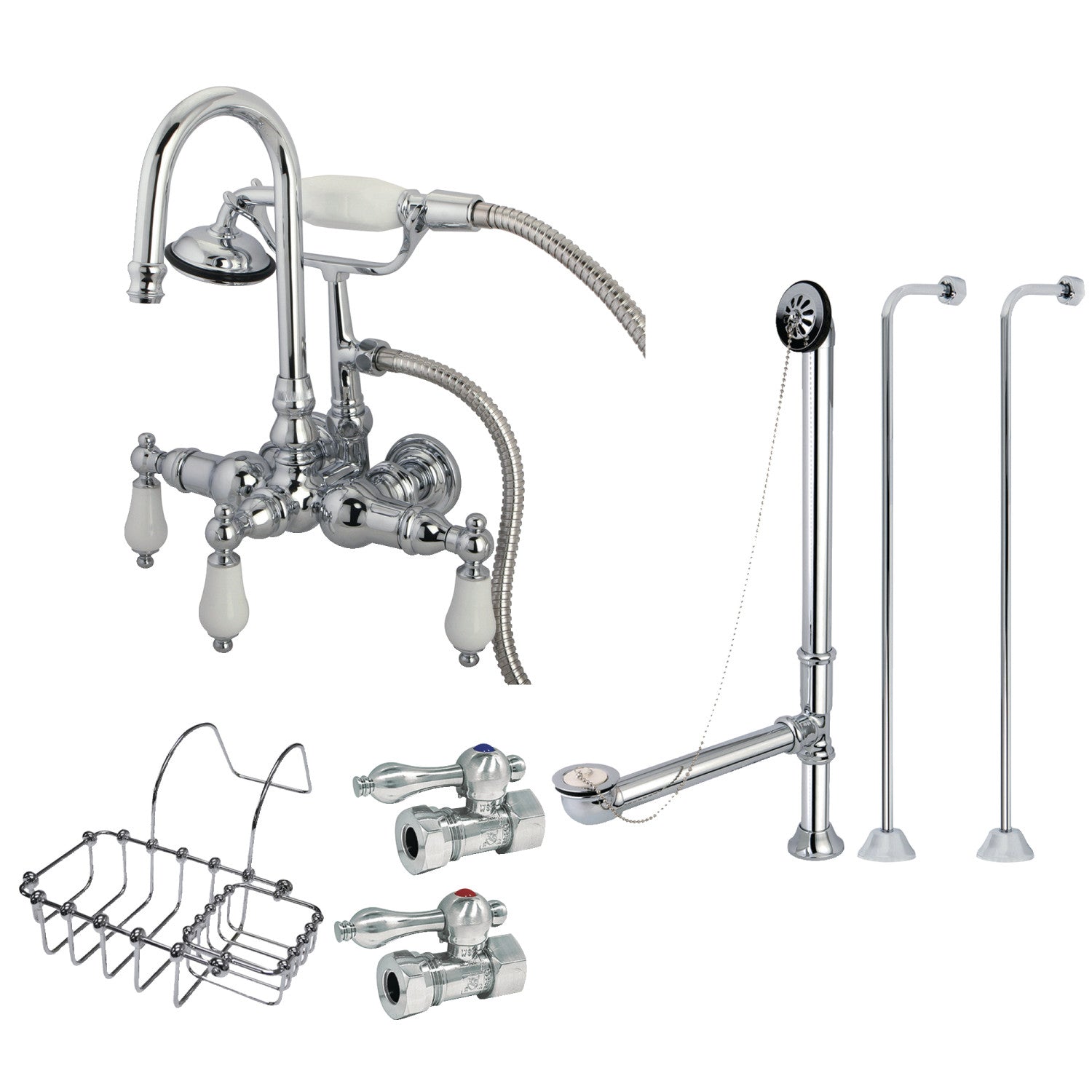 To wrap up your traditionally styled home decorum, incorporate the refinement of one of Kingston Brass' clawfoot tub faucet packages for an all-inclusive and reliable complement to your clawfoot tub. The beautiful vintage styling of this tub filler along with the telephone style handshower will lend to a Victorian style inspiration. All included products are made from sturdy materials and a premium finish for a reliable and long lasting set to last for years to come. Includes faucet, water supply lines, angle stop valves, and drain.