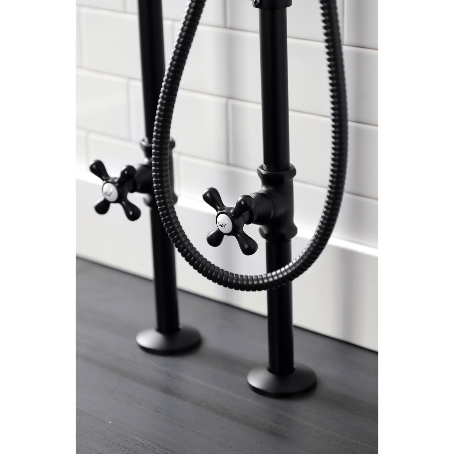 Distinguished for its elegance, sophistication, and exquisite architecture, this freestanding tub faucet is the perfect fixture for any traditional home. Allow it to both complement your freestanding tub and act as a beautiful ornamental piece in your bathroom. As the perfect accompaniment to your tub, the Kingston freestanding clawfoot tub faucet with water supply lines and valves will surely complete your refined bathroom decorum with the help of its premium, glistening matte black finish and hand shower. The solid brass construction also makes for a heavy, quality made product. Includes hand shower with porcelain handle and 59-inch hose.