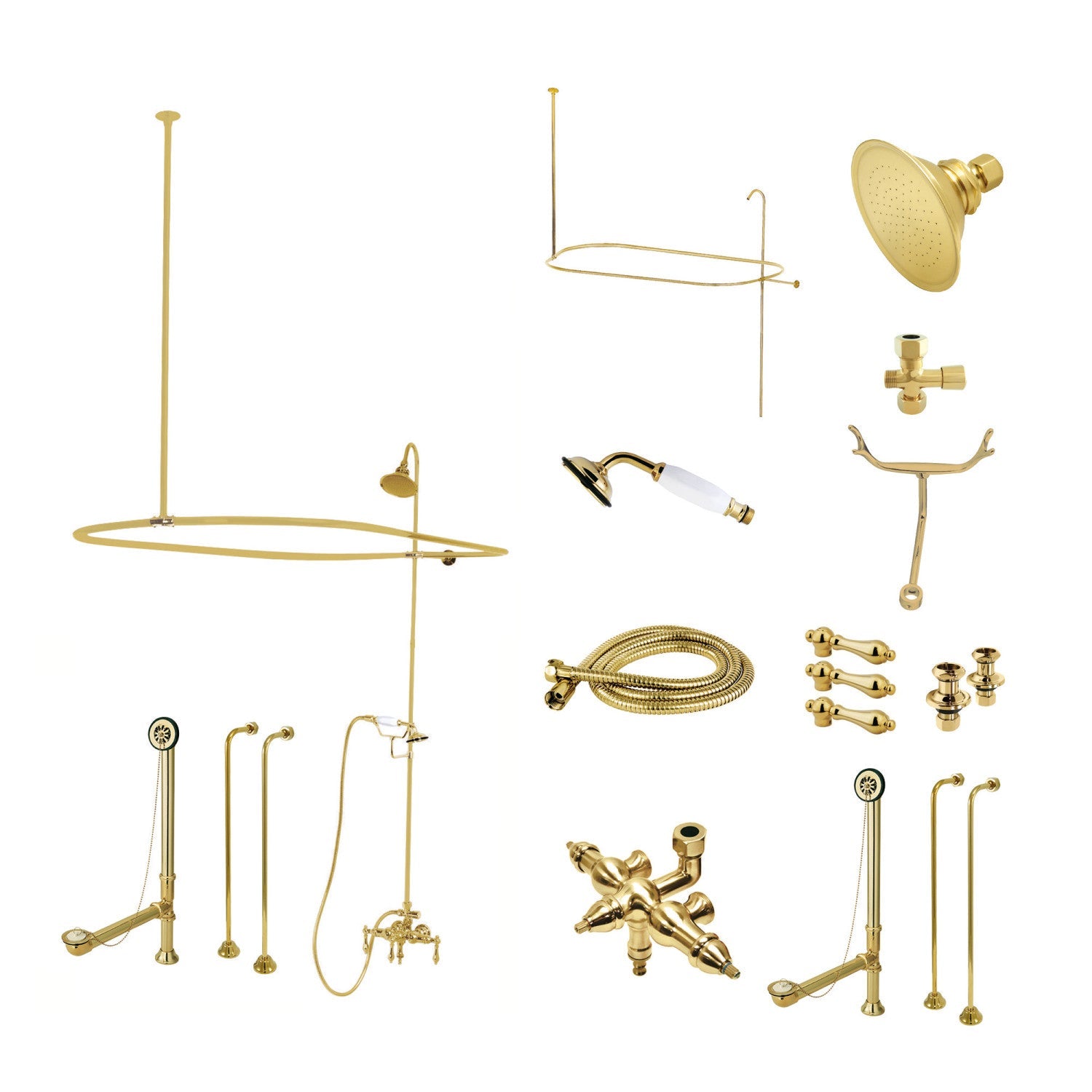 To wrap up your traditionally styled home decorum, incorporate the refinement of one of Kingston Brass' clawfoot tub faucet packages for an all-inclusive and reliable complement to your clawfoot tub. A top-to-bottom beautiful styling is achieved with these coordinated pieces from the shower enclosure down to the drain. All included products are made from sturdy materials and a premium finish for a reliable and long lasting set to last for years to come. Includes faucet, water supply lines, angle stop valves, drain, and shower enclosure.