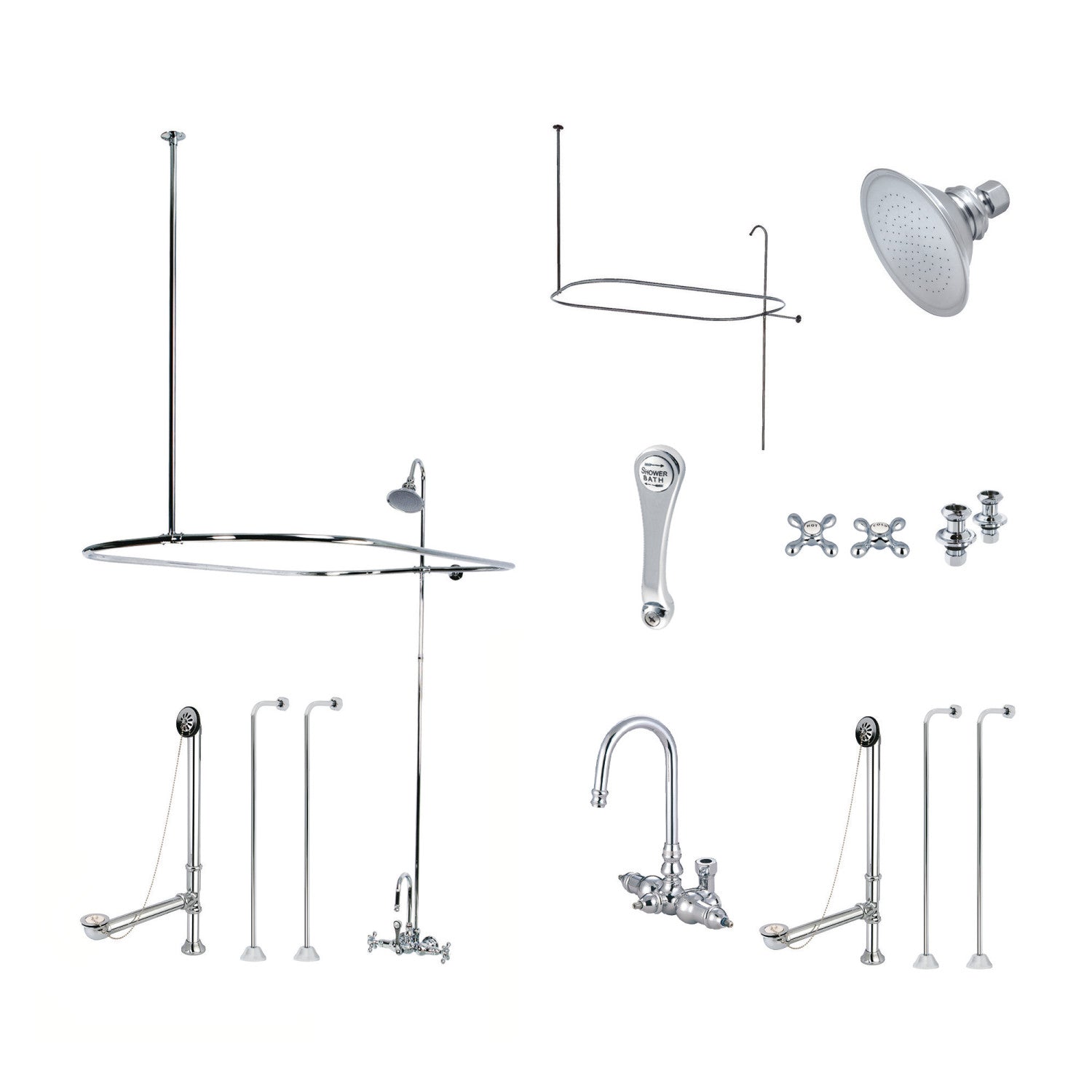 To wrap up your traditionally styled home decorum, incorporate the refinement of one of Kingston Brass' clawfoot tub faucet packages for an all-inclusive and reliable complement to your clawfoot tub. A top-to-bottom beautiful styling is achieved with these coordinated pieces from the shower enclosure down to the drain. All included products are made from sturdy materials and a premium finish for a reliable and long lasting set to last for years to come. Includes tub faucet, showerhead, water supply lines, drain, and shower enclosure.