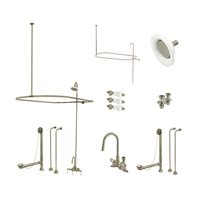 Vintage CCK4148PL Three-Handle 2-Hole Tub Wall Mount Clawfoot Tub Faucet Package with Shower Enclosure, Brushed Nickel