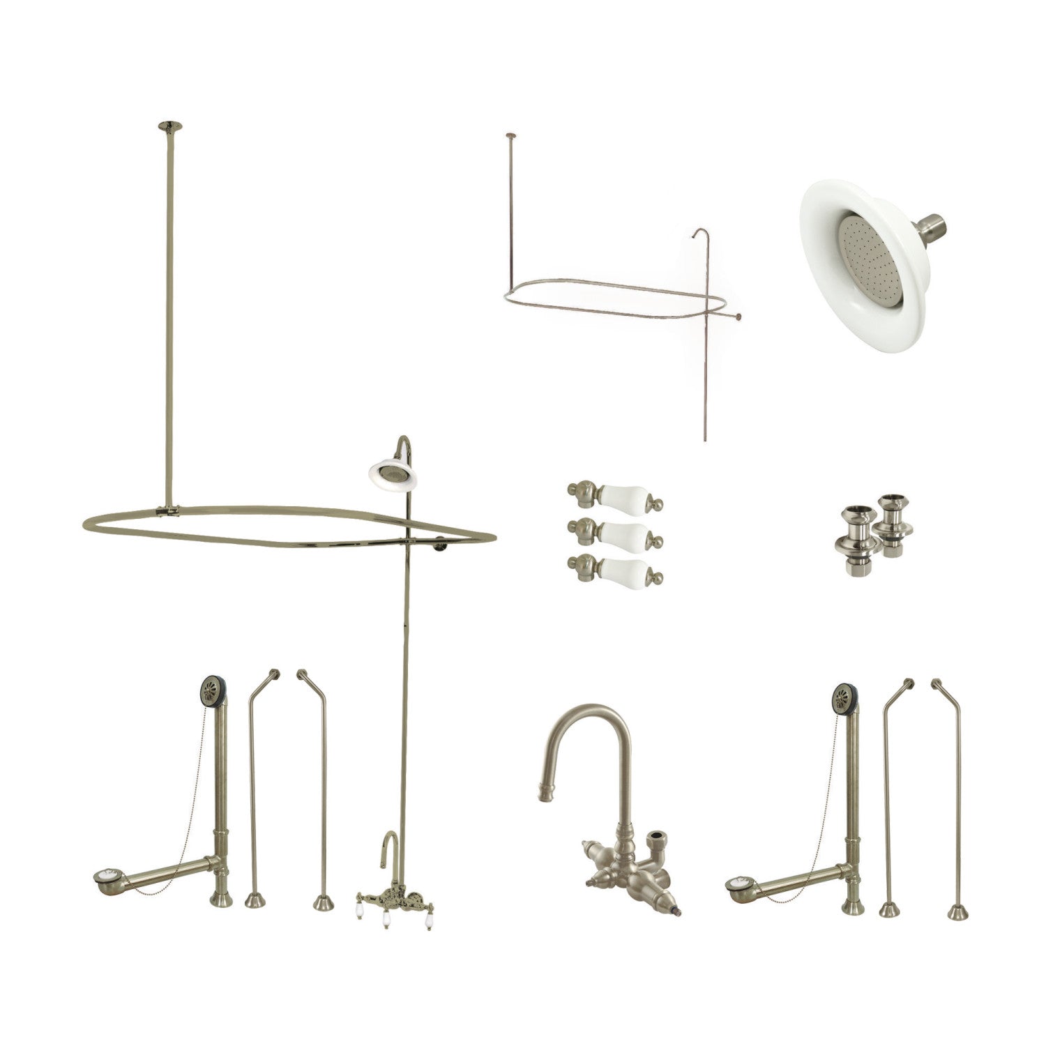 To wrap up your traditionally styled home decorum, incorporate the refinement of one of Kingston Brass' clawfoot tub faucet packages for an all-inclusive and reliable complement to your clawfoot tub. A top-to-bottom beautiful styling is achieved with these coordinated pieces from the shower enclosure down to the drain. All included products are made from sturdy materials and a premium finish for a reliable and long lasting set to last for years to come. Includes faucet, water supply lines, angle stop valves, drain, and shower enclosure.