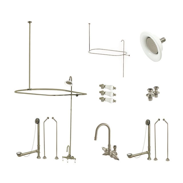 Vintage CCK4188PL Three-Handle 2-Hole Tub Wall Mount Clawfoot Tub Faucet Package with Shower Enclosure, Brushed Nickel