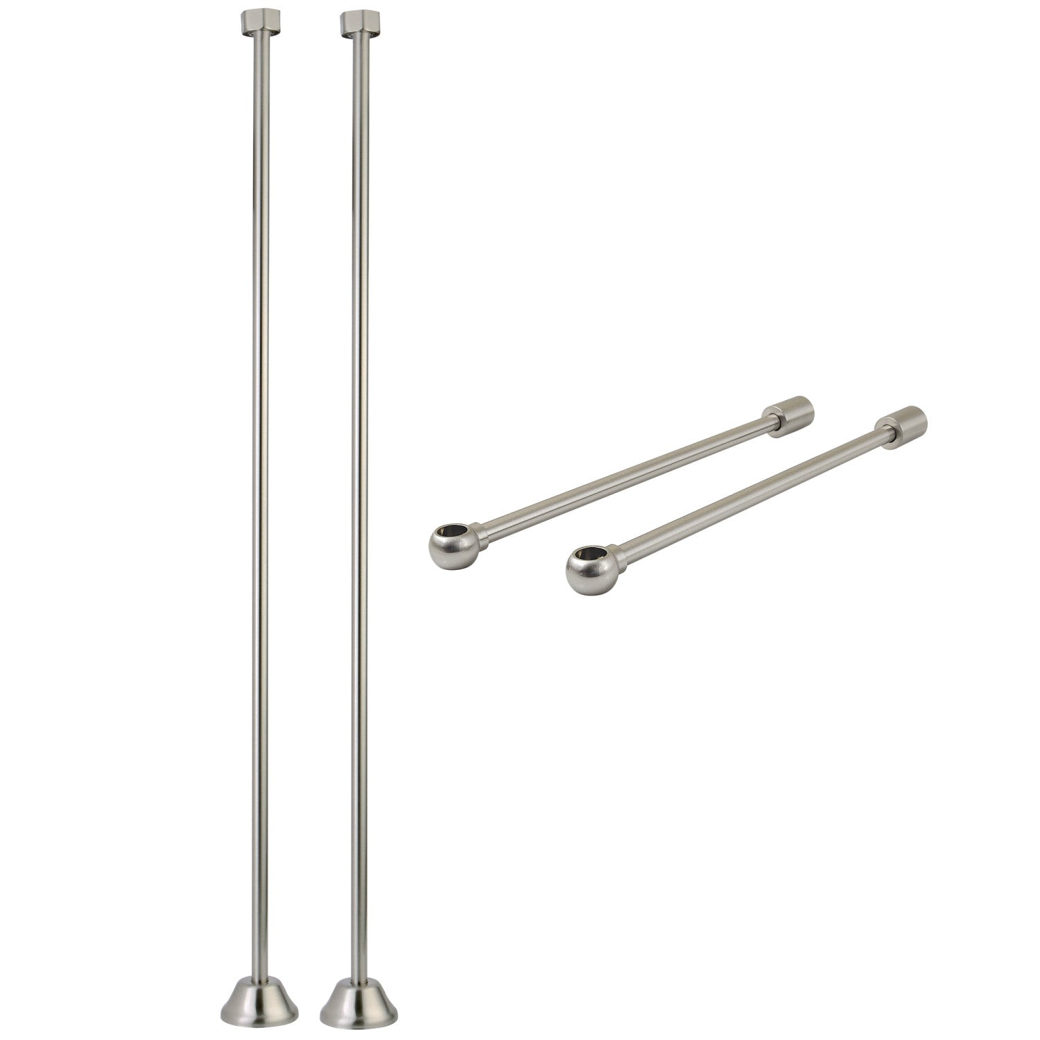 Maximize Your Bath Remodeling Potential with Kingston Brass's Premium Supply Line Set. Featuring two sets of nuts to accommodate 1/2" or 3/4" inlet sizes, these supply lines are compatible with all of your favorite deck-mounted tub fixtures. A set of adjustable wall mounts is included to secure the lines further, as far as 10" from the wall surface. This provides the leverage and support needed for long-lasting leak-free performance. Designed by plumbers for easy and proper tub fitting placement-it's time for your bathroom's full potential.