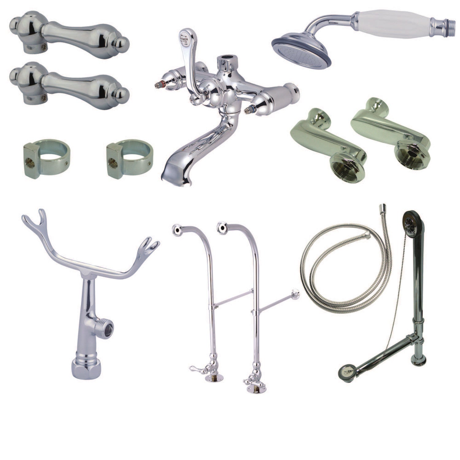 To wrap up your traditionally styled home decorum, incorporate the refinement of one of Kingston Brass' clawfoot tub faucet packages for an all-inclusive and reliable complement to your clawfoot tub. The beautiful vintage styling of this tub filler along with the telephone style handshower will lend to a Victorian style inspiration. All included products are made from sturdy materials and a premium finish for a reliable and long lasting set to last for years to come. Includes faucet, water supply lines, angle stop valves, and drain.