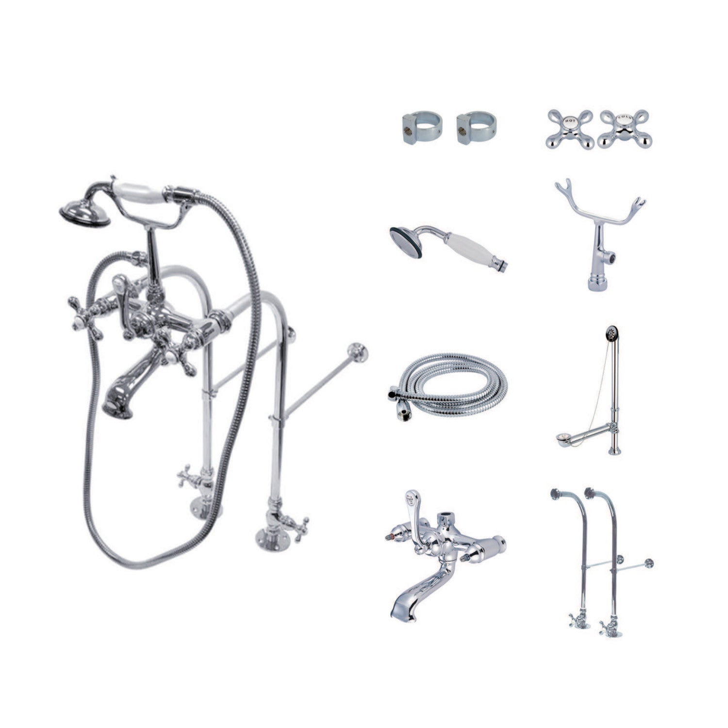 To wrap up your traditionally styled home decorum, incorporate the refinement of one of Kingston Brass' clawfoot tub faucet packages for an all-inclusive and reliable complement to your clawfoot tub. The beautiful vintage styling of this tub filler along with the telephone style handshower will lend to a Victorian style inspiration. All included products are made from sturdy materials and a premium finish for a reliable and long lasting set to last for years to come. Includes faucet, water supply lines, angle stop valves, and drain.