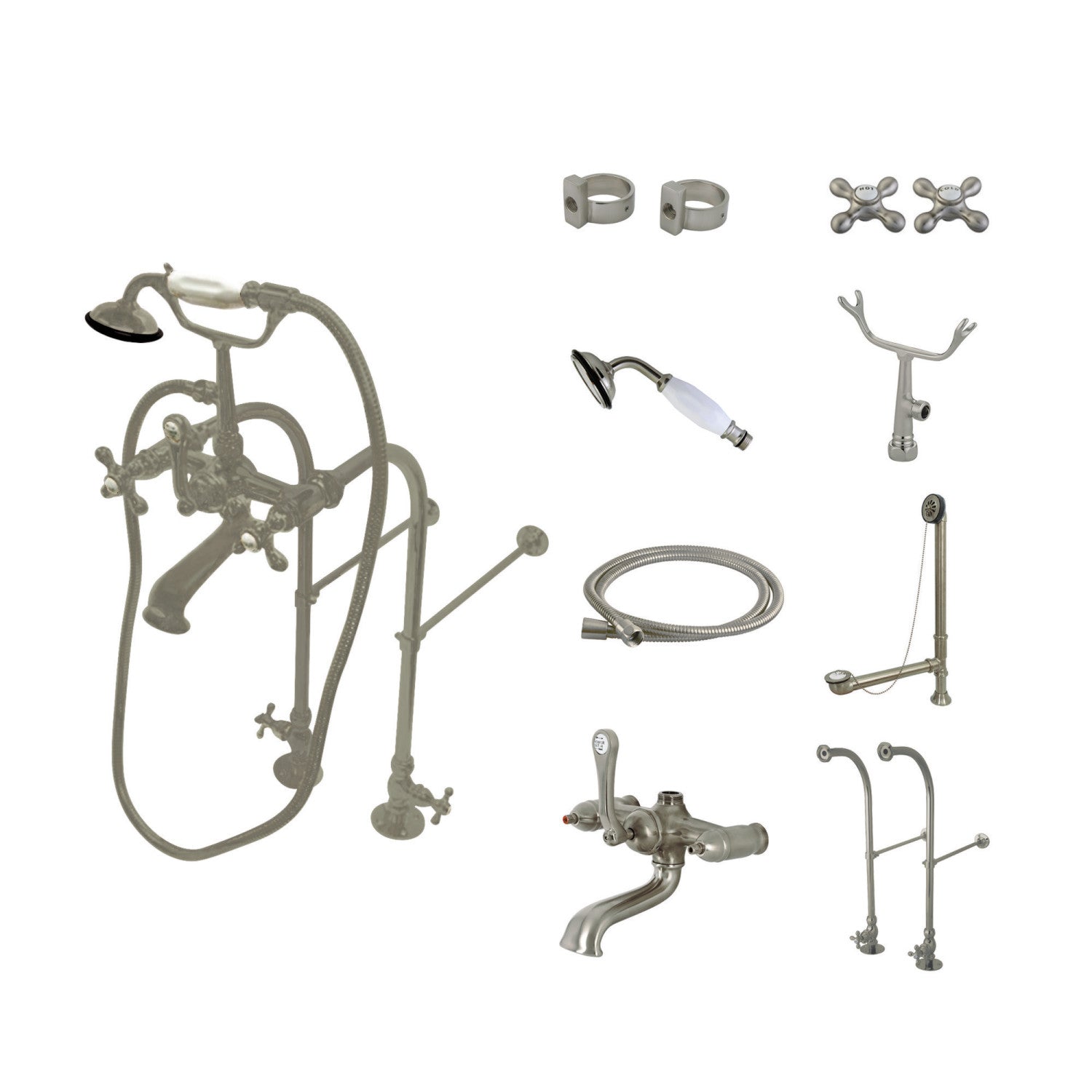 To wrap up your traditionally styled home decorum, incorporate the refinement of one of Kingston Brass' clawfoot tub faucet packages for an all-inclusive and reliable complement to your clawfoot tub. The beautiful vintage styling of this tub filler along with the telephone style handshower will lend to a Victorian style inspiration. All included products are made from sturdy materials and a premium finish for a reliable and long lasting set to last for years to come. Includes faucet, water supply lines, angle stop valves, and drain.