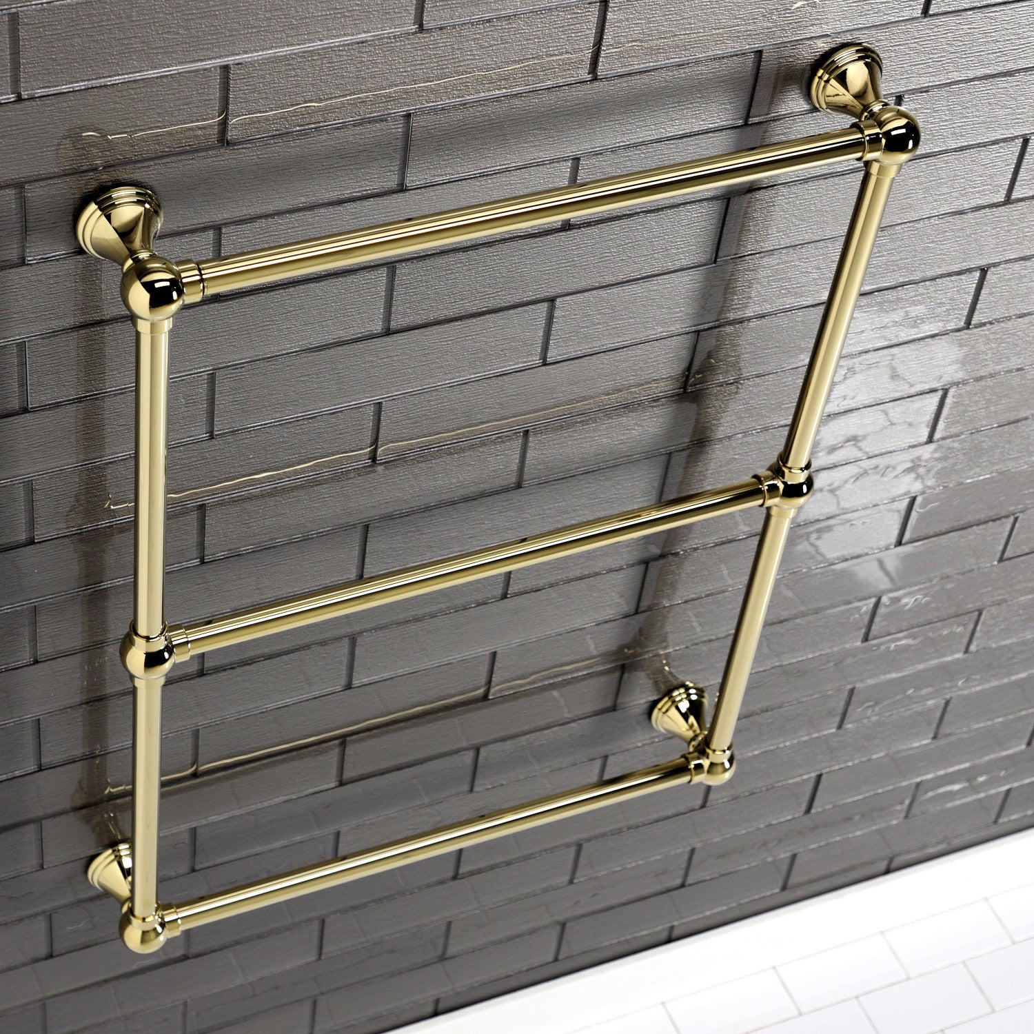 Maximize your towel hanging space with the addition of this elegant ladder type towel rack. Its 3 horizontal levels will provide you with 72" of towel hanging space while only using 5 square feet of wall space. Available in many finishes to match your bathroom decor.