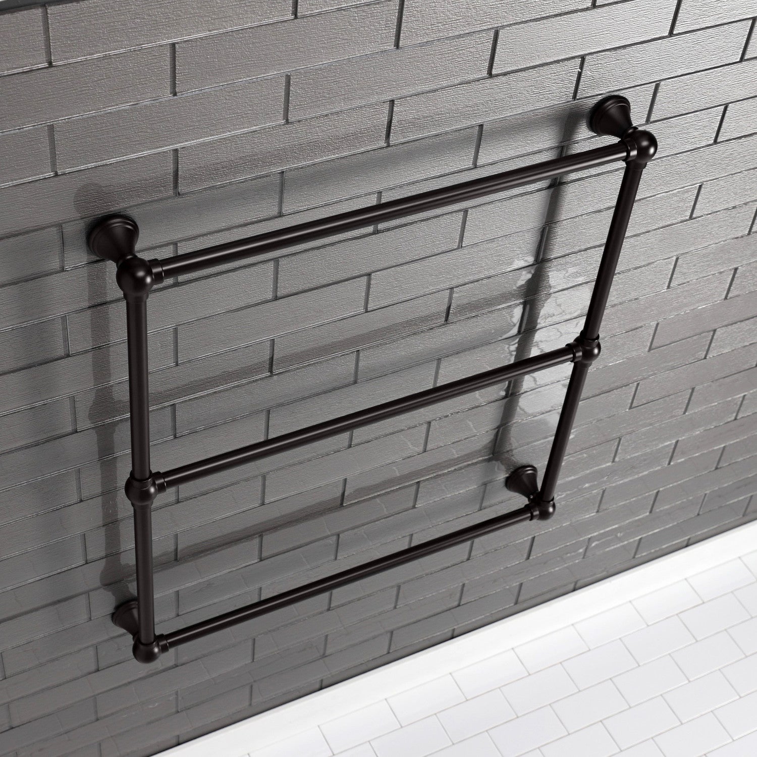 Maximize your towel hanging space with the addition of this elegant ladder type towel rack. Its 3 horizontal levels will provide you with 90" of towel hanging space while only using 6.66 square feet of wall space. Available in many finishes to match your bathroom decor.