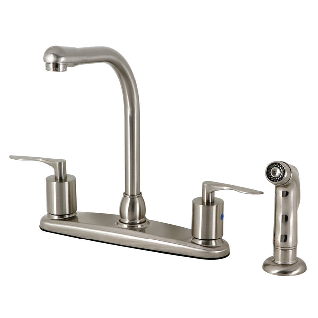 Serena FB758SVLSP Two-Handle 4-Hole Deck Mount 8" Centerset Kitchen Faucet with Side Sprayer, Brushed Nickel