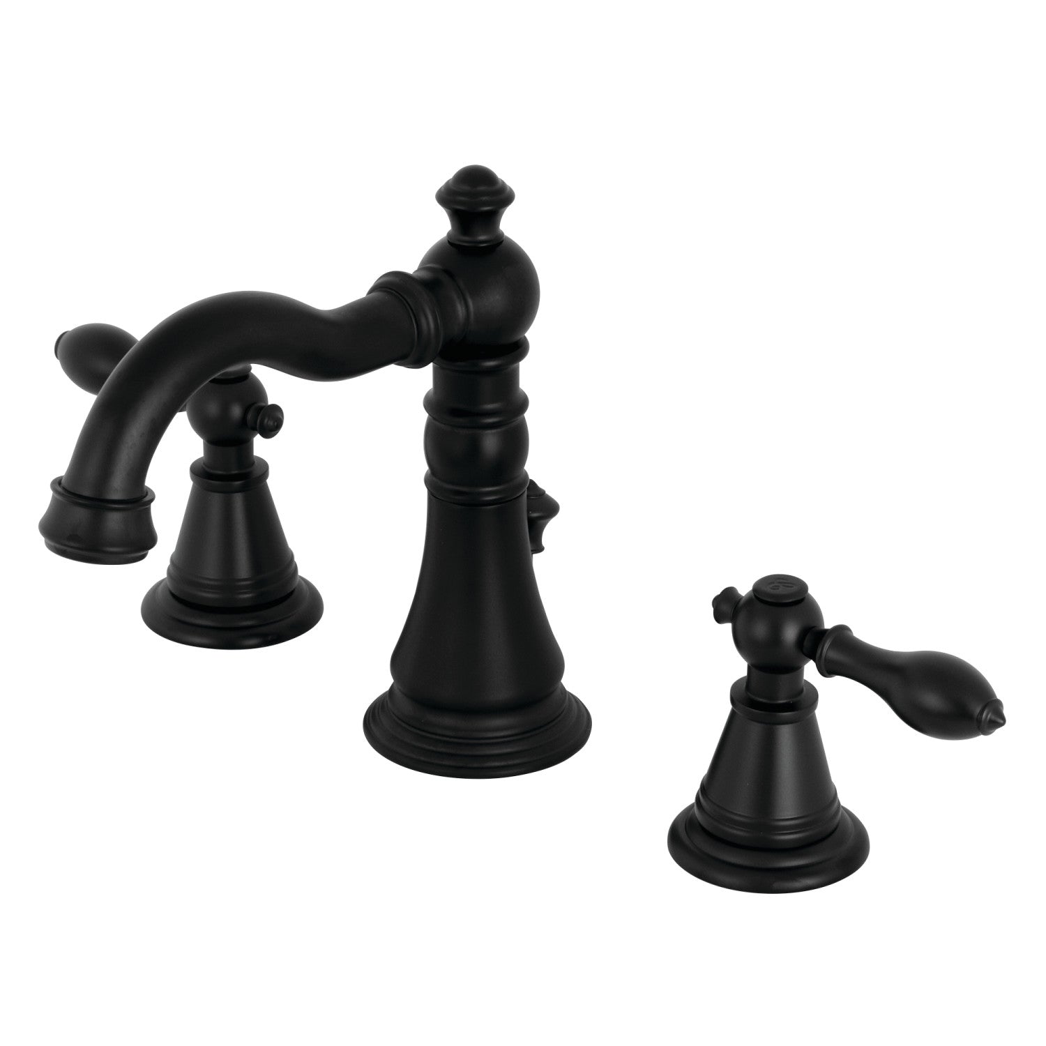 The exquisite design of this faucet tastefully flatters the elegant architecture of traditional homes with its fine detailing. Ideal for more spacious bathrooms, widespread faucets are more spread apart and feature a 3-hole installation. The English Classic widespread bathroom faucet and its featured sturdy brass construction and premium matte black finish are guaranteed to glamorize your home's traditional ensemble for years to come. A matching finish drain is also included.