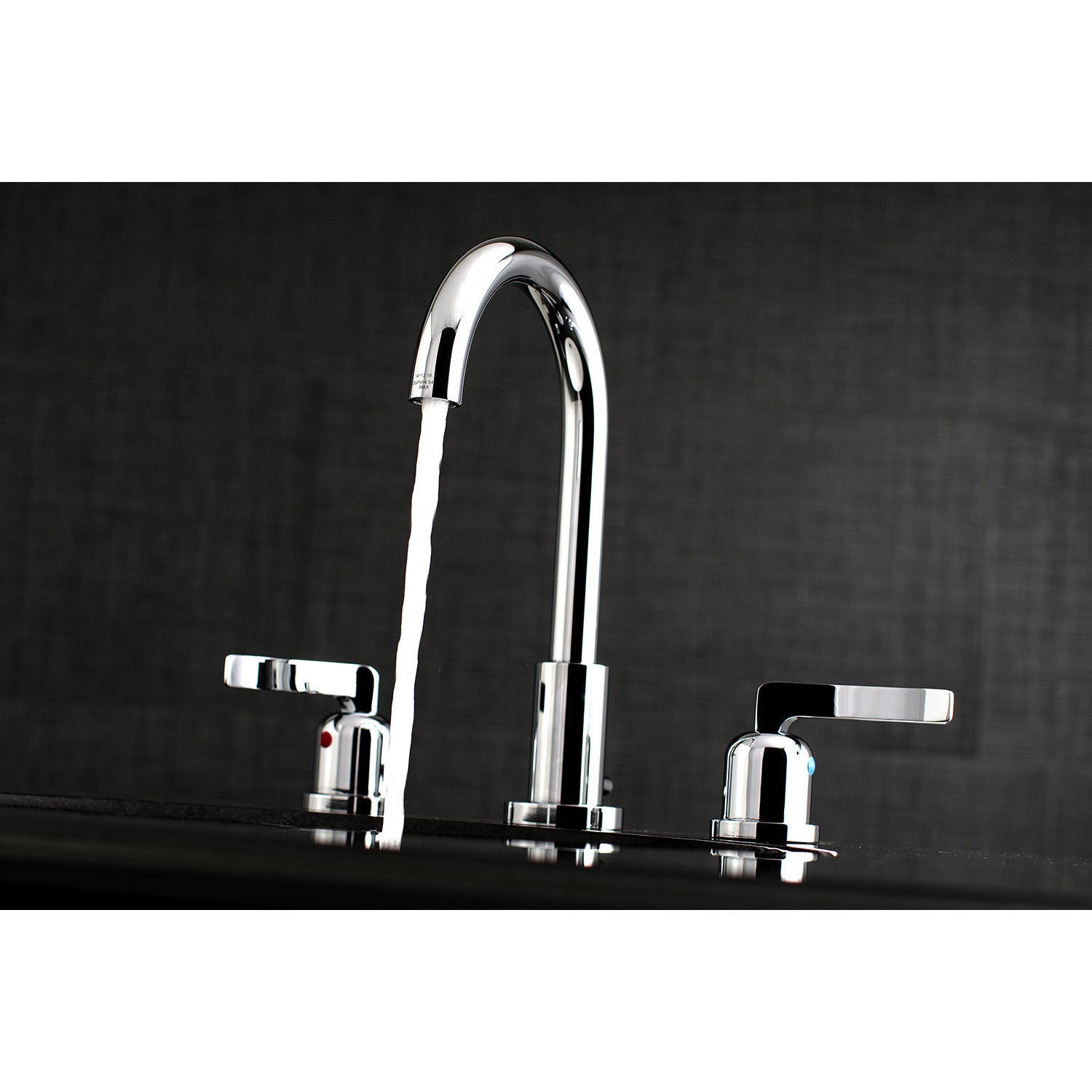 The innovative, sleek design of this faucet will enhance contemporary decor Ideal for more spacious bathrooms, widespread faucets are more spread apart and feature a 3-hole installation. The Centurion 8 in. widespread bathroom faucet with brass pop-up and its featured sturdy brass construction and premium polished chrome finish are guaranteed to glamorize your home's modern ensemble for years to come. Upgrade your contemporary home into a place of elite sophistication with this faucet. A matching finish drain is also included.