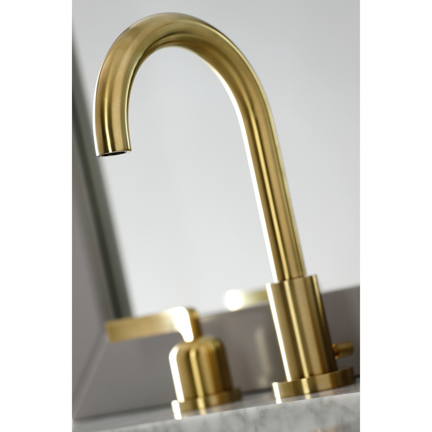 The innovative, sleek design of this faucet will enhance contemporary decor Ideal for more spacious bathrooms, widespread faucets are more spread apart and feature a 3-hole installation. The Centurion 8 in. widespread bathroom faucet with brass pop-up and its featured sturdy brass construction and premium brushed brass finish are guaranteed to glamorize your home's modern ensemble for years to come. Upgrade your contemporary home into a place of elite sophistication with this faucet. A matching finish drain is also included.