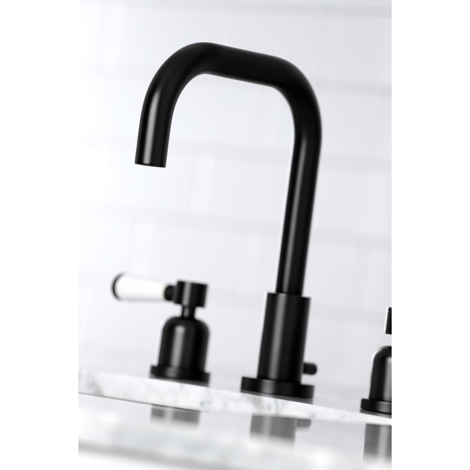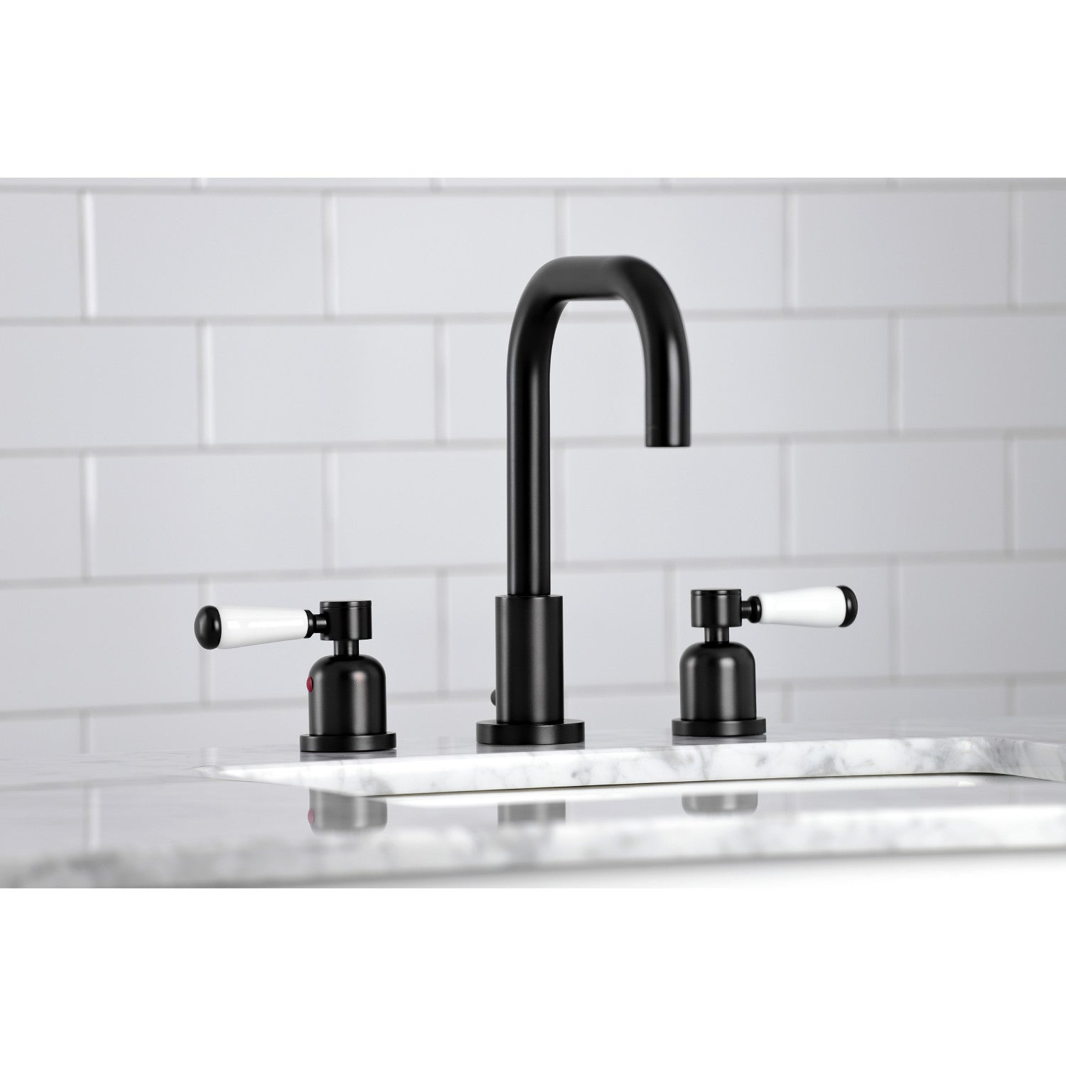 Crafted to bring aesthetic beauty alongside exceptional performance, the feature of porcelain lever handles and rounded architecture solidifies pristine refinement in this faucet. Ideal for more spacious bathrooms, widespread faucets are more spread apart and feature a 3-hole installation. The Paris widespread bathroom faucet with brass pop-up and its featured sturdy brass construction and premium matte black finish are guaranteed to glamorize your home's modern ensemble for years to come. Embolden your home ensemble with the addition of this exquisite fixture. A matching finish drain is also included.
