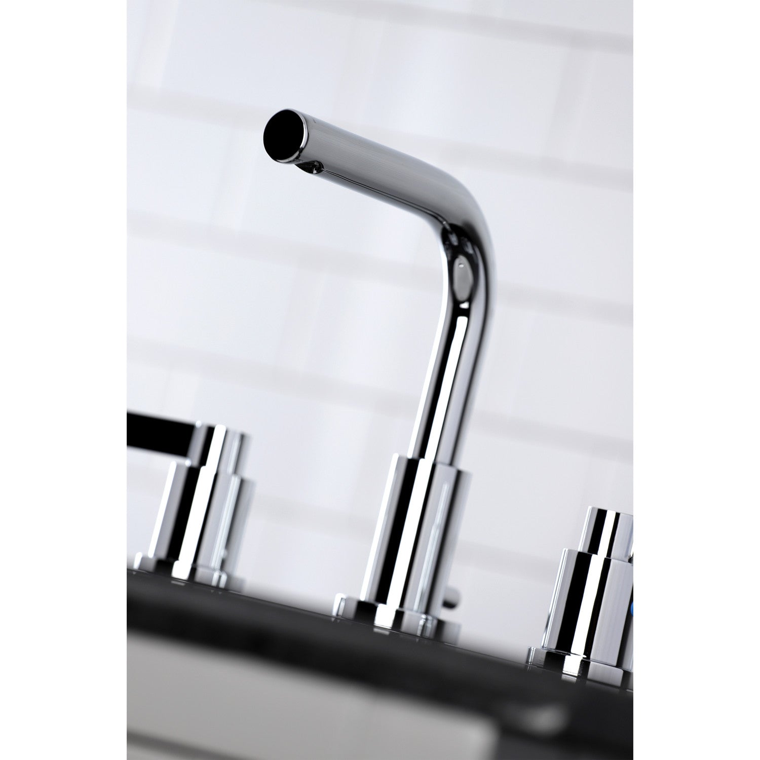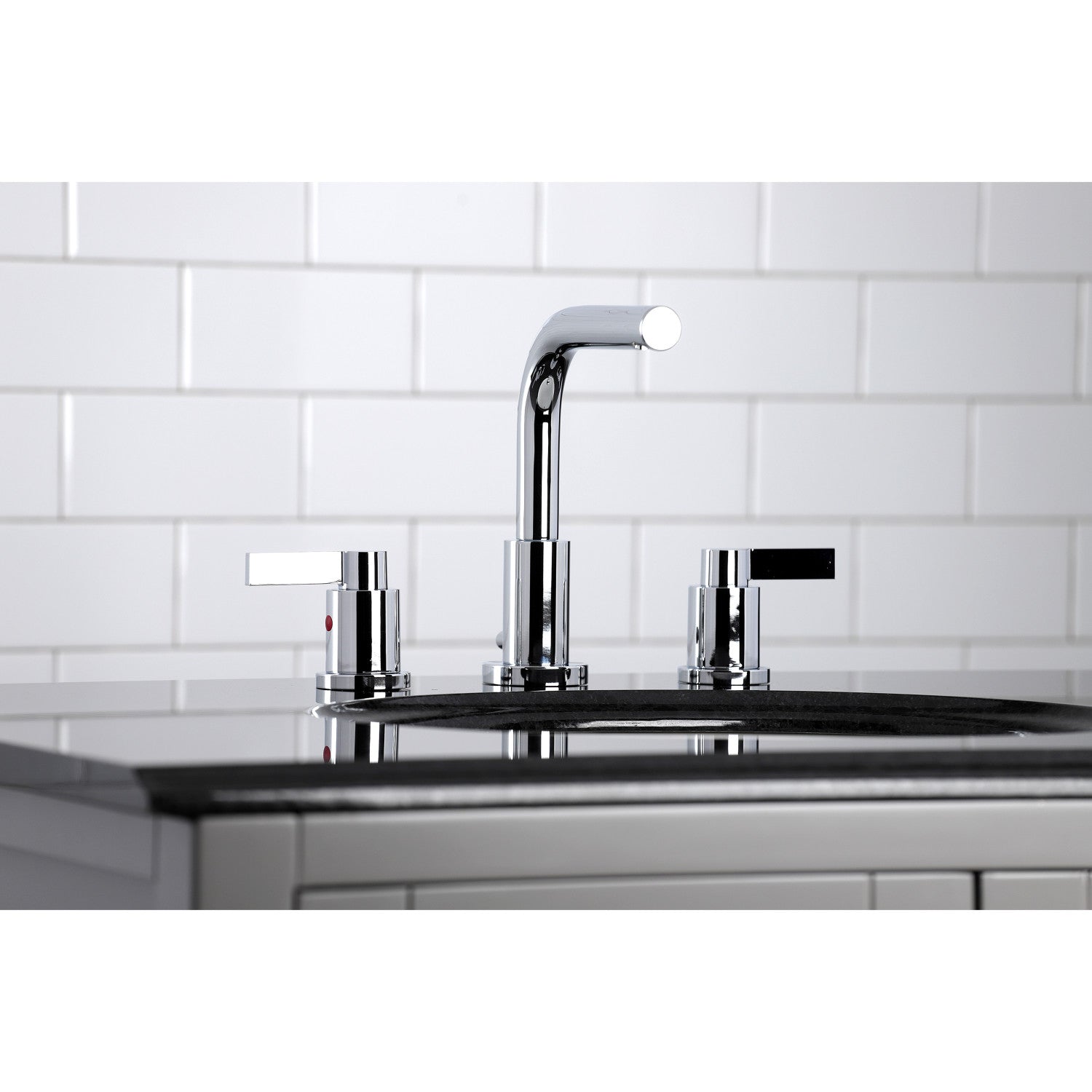 The chic fashion of this faucet is distinguished by its expressive artistry and flat, ergonomic levers. Ideal for more spacious bathrooms, widespread faucets are more spread apart and feature a 3-hole installation. The NuvoFusion 8-inch widespread bathroom faucet with brass pop-up and its featured sturdy brass construction and premium polished chrome finish are guaranteed to glamorize your home's modern ensemble for years to come. Revive the obsolete with the illustrious prestige of this fixture. A matching finish drain is also included.