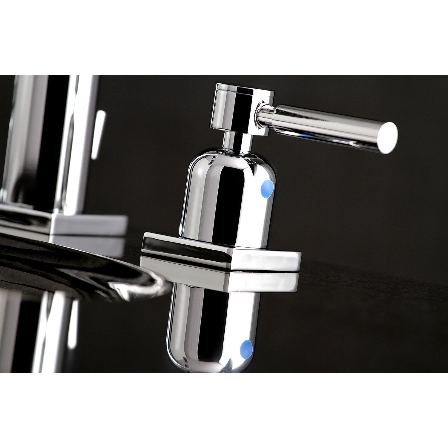This faucet boasts bold, sleek design with its cylindrical styling. Ideal for more spacious bathrooms, widespread faucets are more spread apart and feature a 3-hole installation. The Concord 8-inch widespread bathroom faucet and its featured sturdy brass construction and premium polished chrome finish are guaranteed to glamorize your home's modern ensemble for years to come. Flash the radical brilliance of contemporary trends with this statement piece. A matching finish drain is also included.