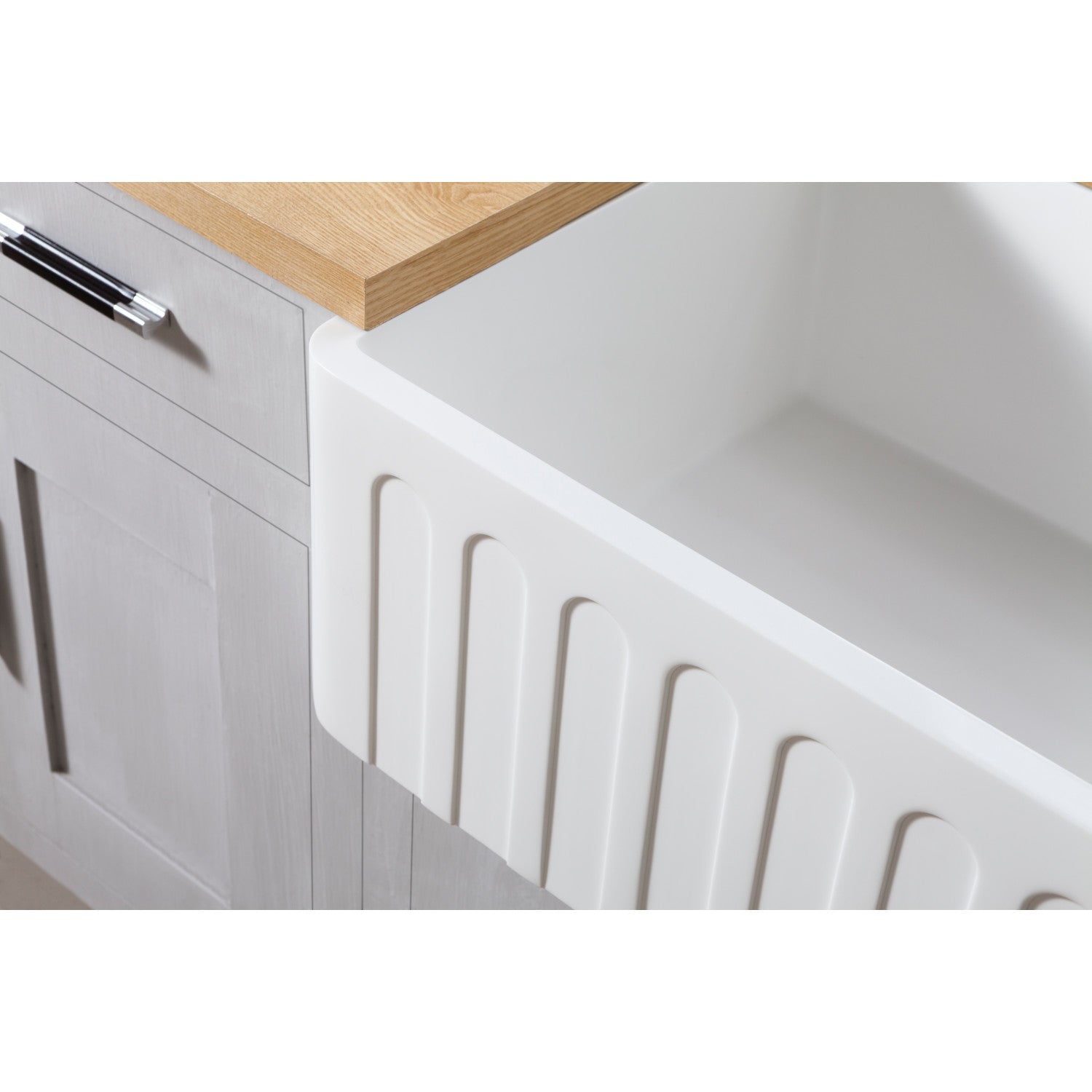 Arcticstone GKFA361810CD 36-Inch Solid Surface White Stone Apron-Front Single Bowl Farmhouse Kitchen Sink, Matte White