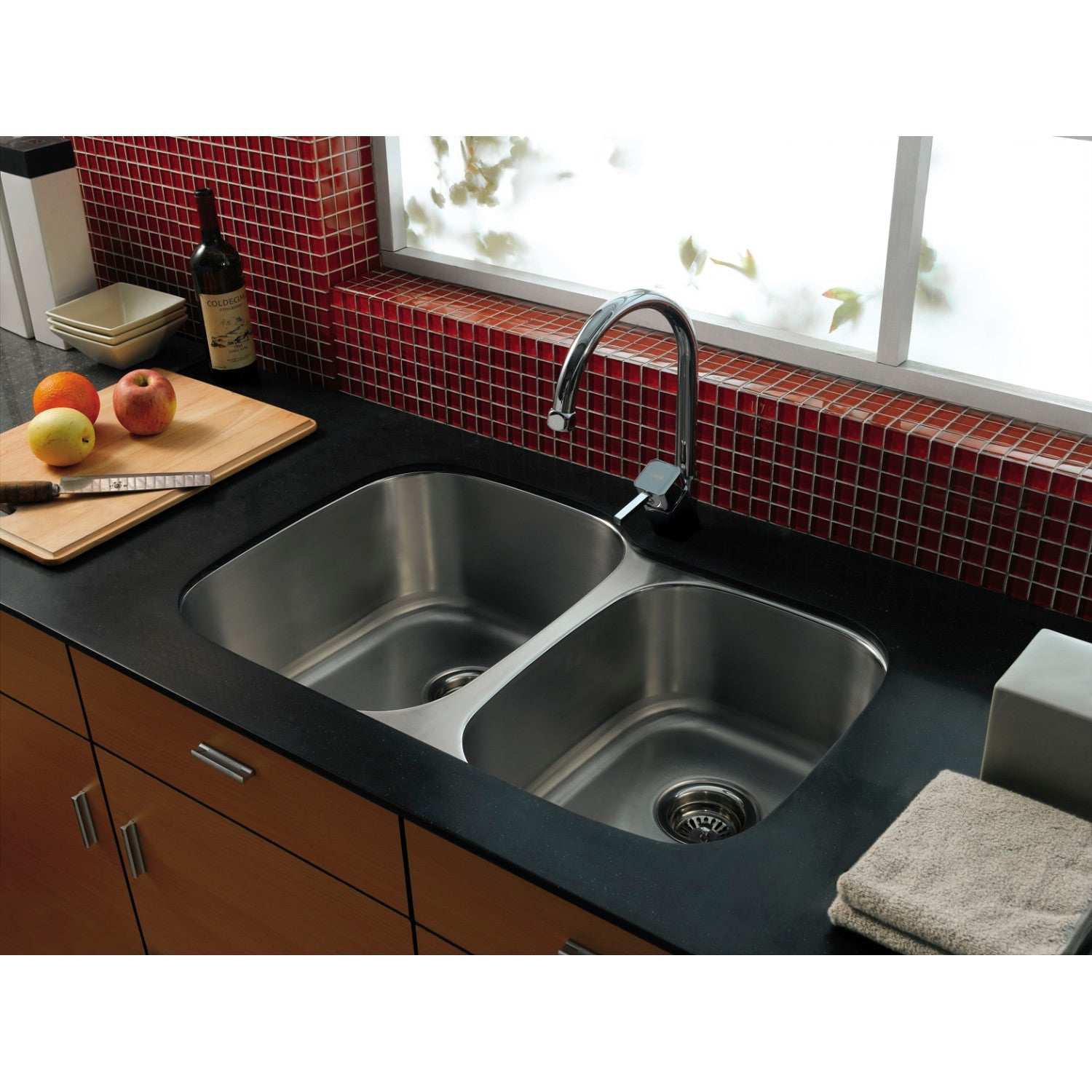 The Loft collection brings forth bold design and smooth lines, enhancing your contemporarily styled home. For an easy-to-clean kitchen, undermount sink installations allow users to wipe crumbs straight from the counter top to the bowl. The Loft Undermount Double Bowl Kitchen Sink in particular, is constructed from high quality 304 grade rust-resistant stainless steel. The brushed finish is also resistant to scratches, and with the sink's sound dampening technology, sound and vibrations are reduced. Perfect for organizing, separate fruits and vegetables that need washing from dirty dishes, or allow dishes to dry on one half and be washed on the other with the provided double bowl. Undermount kitchen sinks will surpass all expectations for both functionality and form in your modern kitchen.