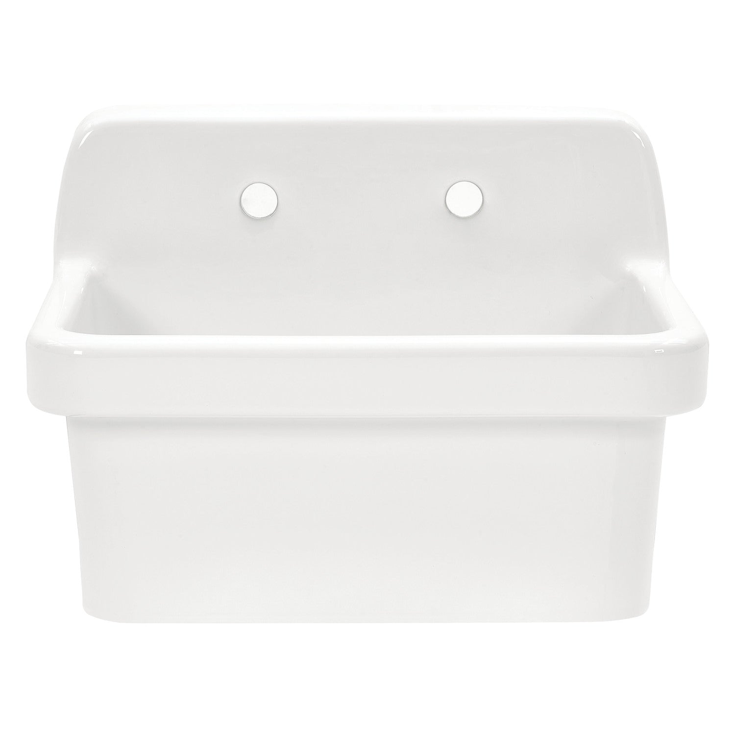 Make a bold statement with Kingston's Doriteal collection. Design details include a backsplash and rolled-style basin lip making this sink a versatile piece perfectly suited to traditional, eclectic, industrial, or utilitarian design. The heavy-duty ceramic material makes this sink ideal for use in any kitchen, laundry room, or mud room, even for large households ready to put it to heavy daily use. This sink is glazed glossy white to ensure a refined look that lasts and will be easy to clean and maintain. This model features a standard 3-1/2" kitchen sink drain opening diameter. Please note, customers wishing to purchase an upgraded finish-matched drain for this sink will need to select one of our extended depth sink drain and strainer assemblies due to the thickness of the basin floor. Overall sink width is 24" and front-to-back depth from wall to lip is 19" providing a generous workspace to wash dishes, clothes, tools, or even pets! Overall sink height is 16-1/2" and basin depth is 8-7/8". The backsplash is pre-drilled with 8" centers for a wall-mount kitchen faucet.